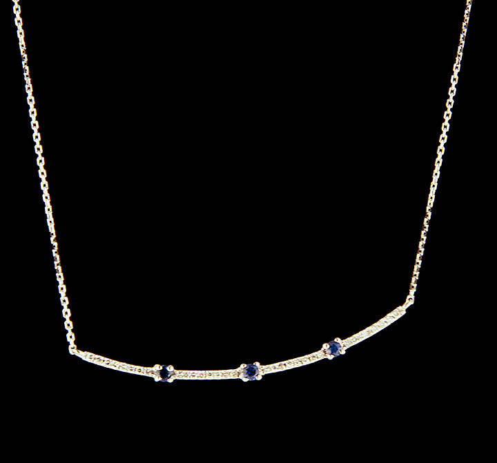 Diamond 0.13ctw and Sapphire 0.13ctw Bar Necklace in 14K White Gold