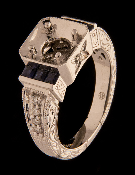 Diamond 0.13ctw and Sapphire 0.40ctw Semi-Mount Engagement Ring in 14K White Gold – Stock# 8115