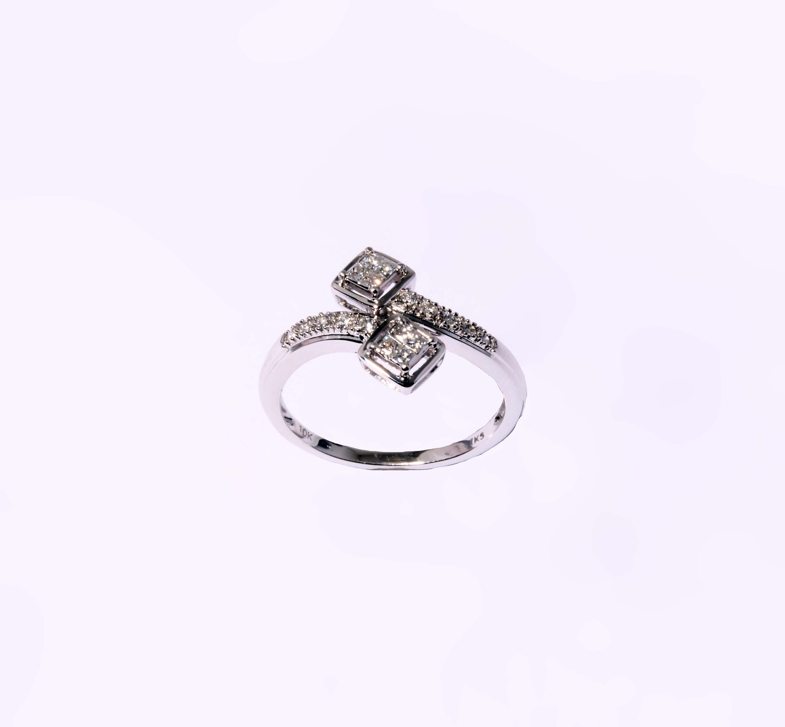 Diamond (0.20ctw) Bypass Ring in 10K White Gold – Stock# 9500 Head size: 13mm