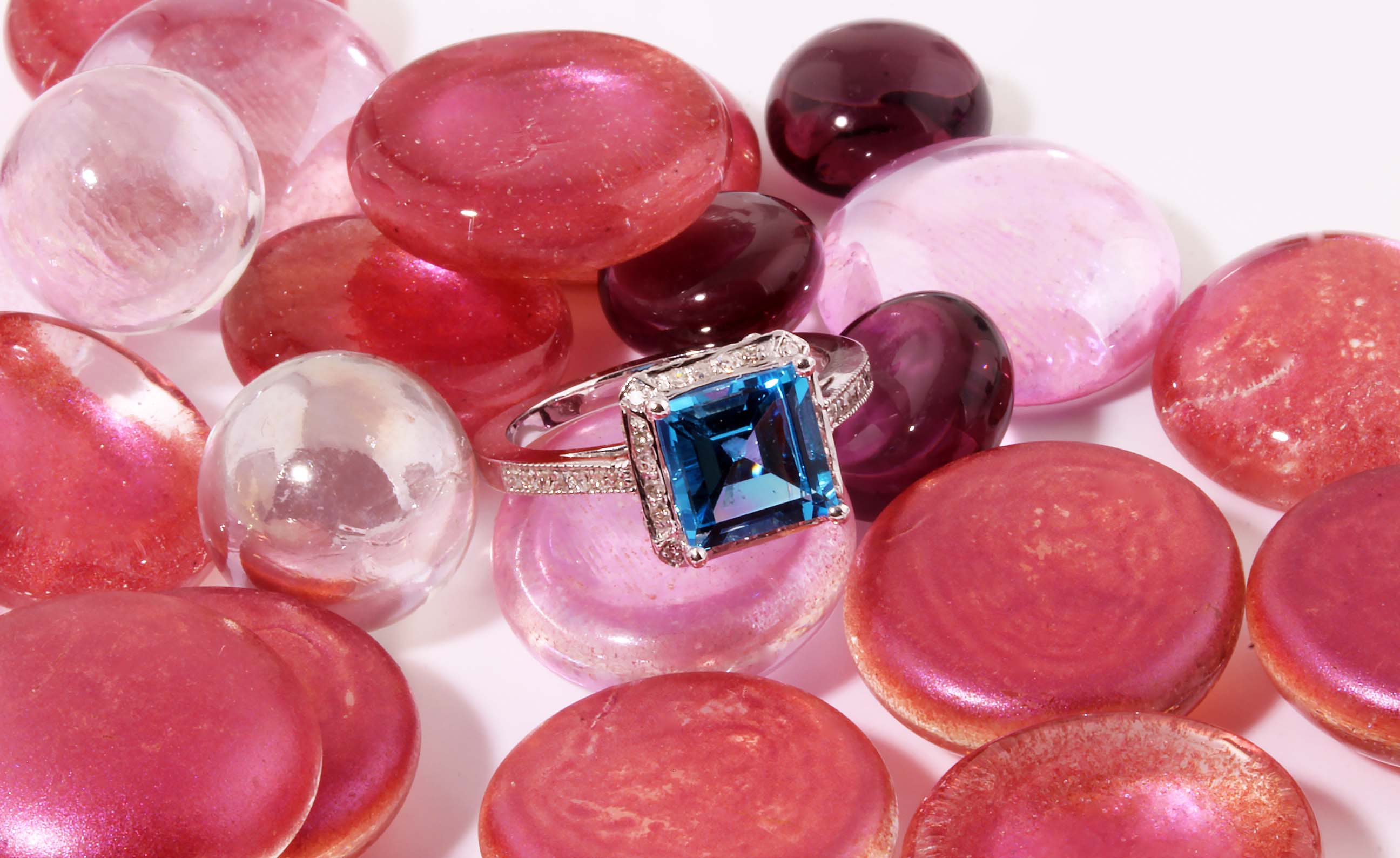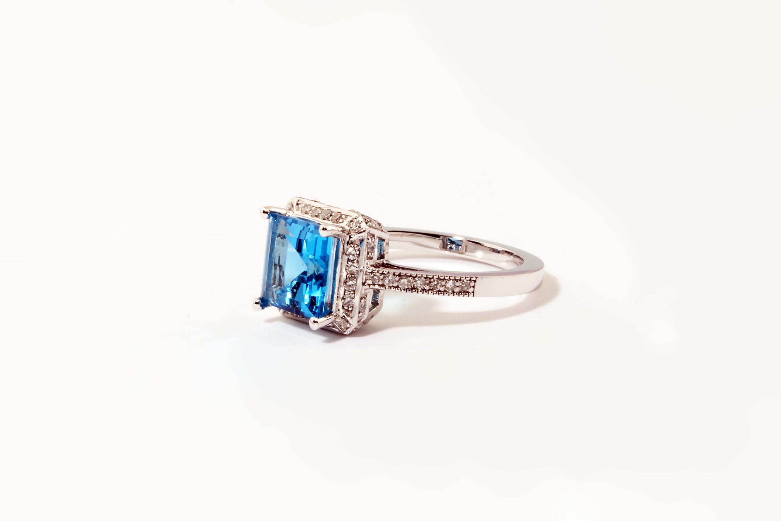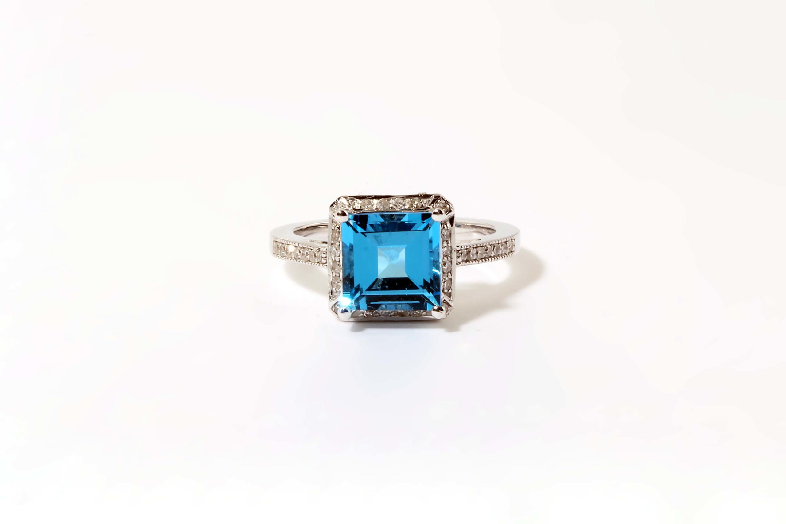 Diamond 0.29 ctw and Square Blue Topaz Ring 14K White Gold – Stock# 7194