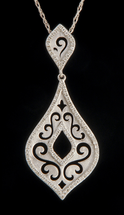 Diamond (0.32ctw) Filigree Pendant in 14K White Gold – Stock# 8507