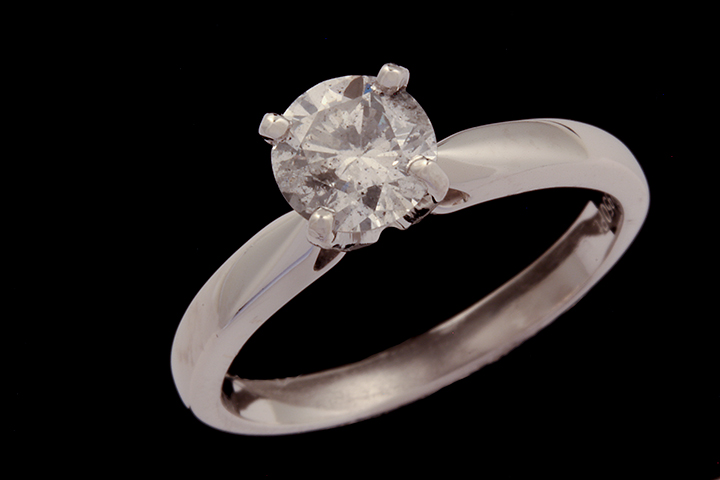 Diamond (0.78ctw) I2, L Solitaire Engagement Ring in 14K White Gold – Stock# 9219