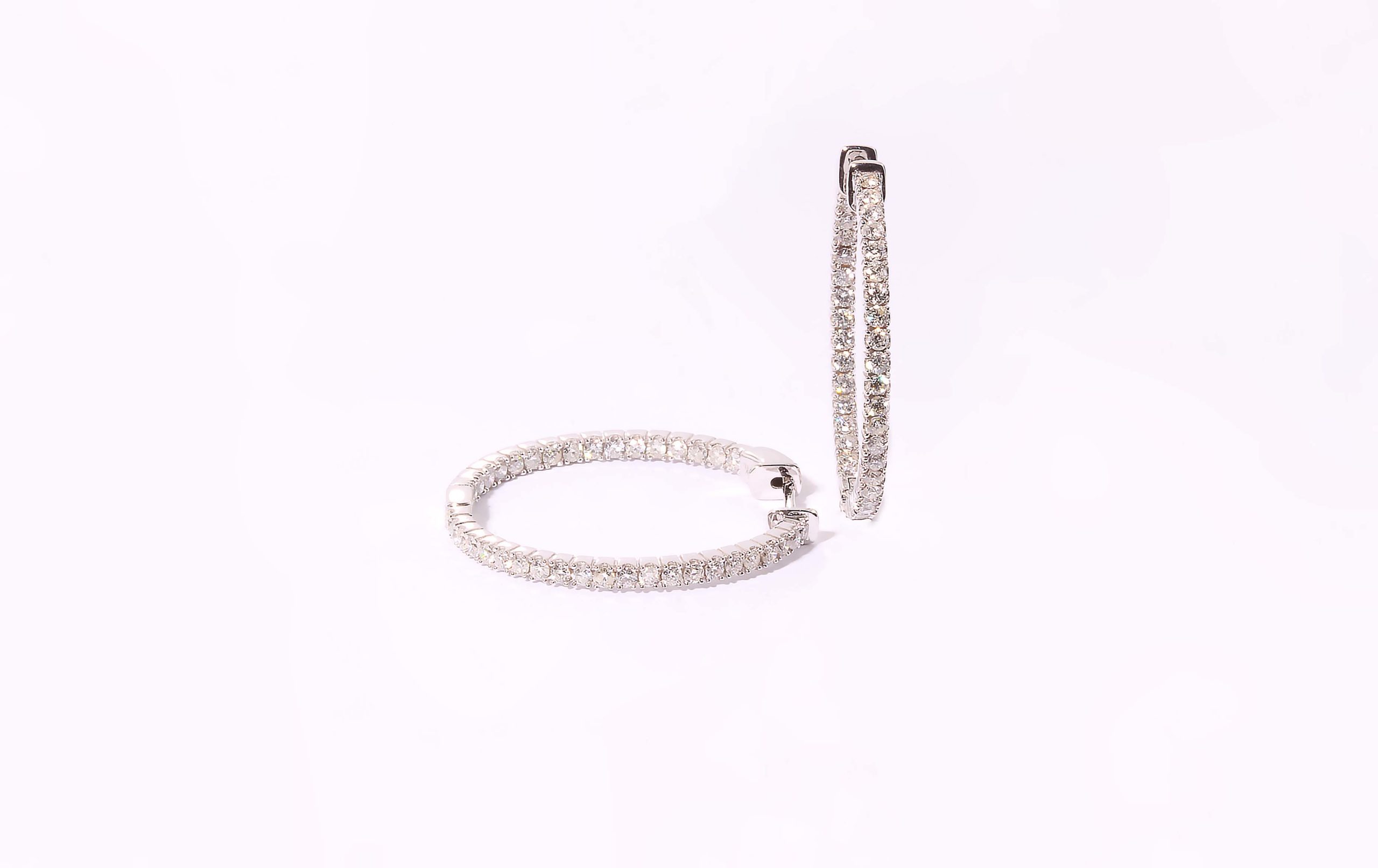 Diamond 1.45 ctw Oval In and Out Hoops in 14K White Gold – Stock# 8284