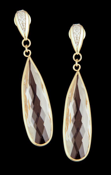 Diamond and Clear Quartz Dangle Post Earrings in 14K Yellow Gold – Stock# 9107