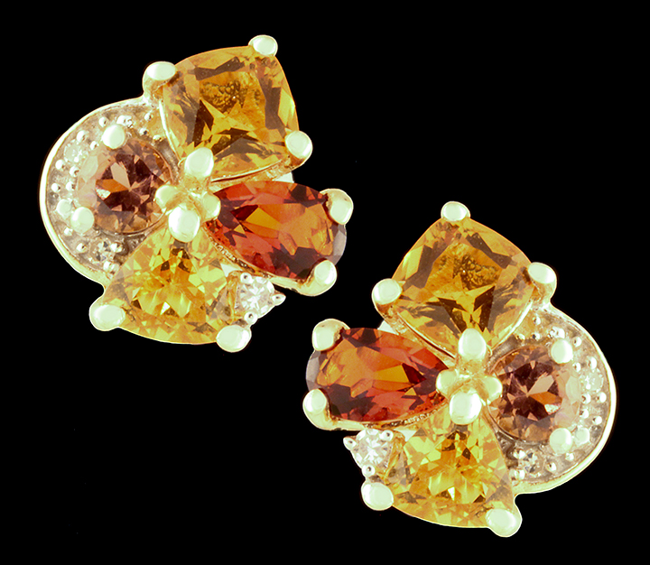 Diamond and Multi-Colored Stone Post Earrings in 14K Yellow Gold – Stock# 9121
