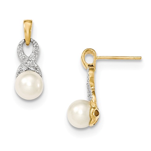 Diamond and Pearl “X” Post Dangle Earrings in 14K Yellow Gold – Stock# 6320