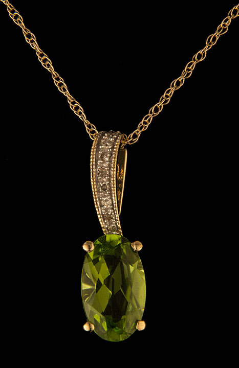 Diamond and Peridot Pendant in 14K Yellow Gold – Stock# 7562