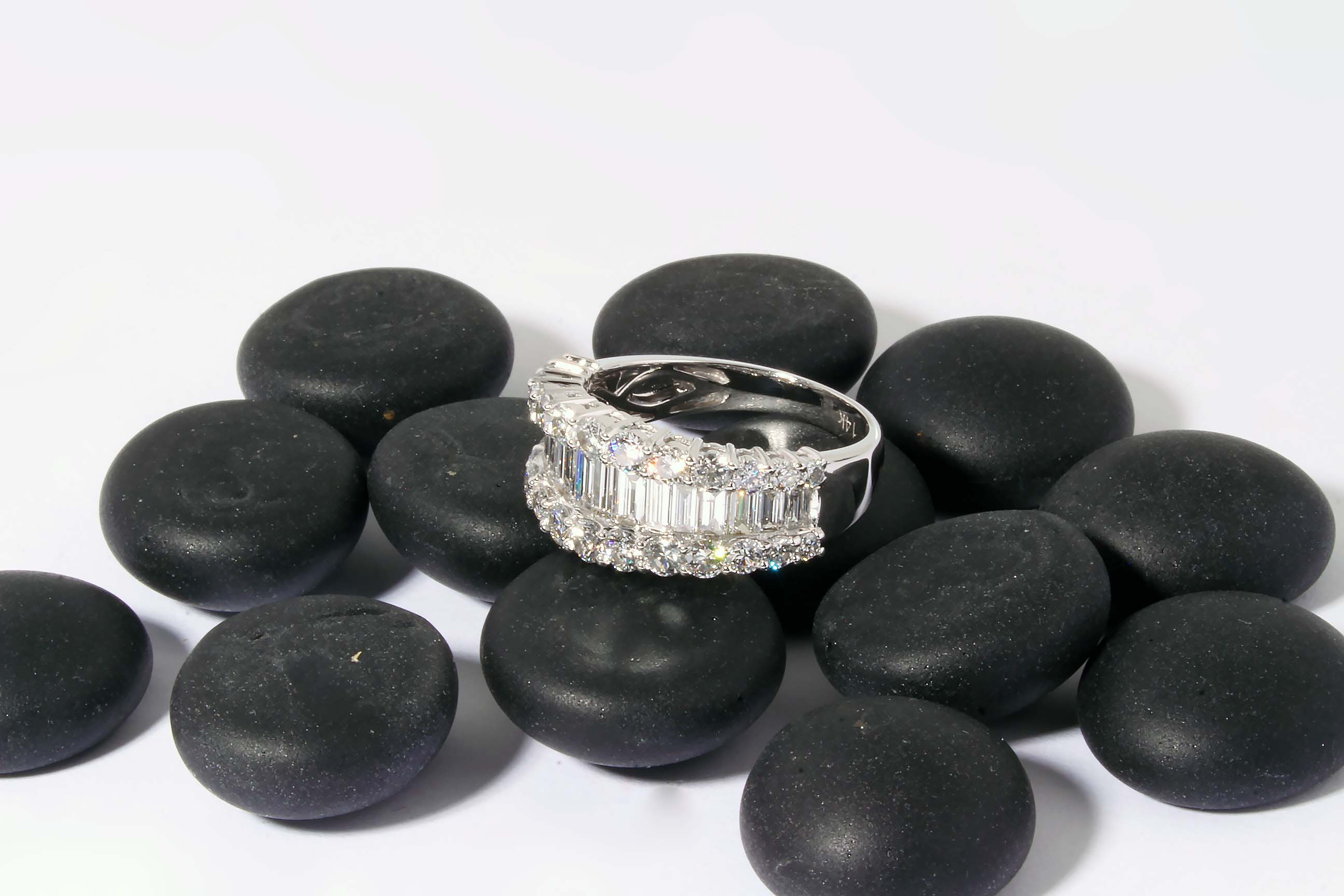 Diamond Baguette and Round Br. Three Row Diamond Band 2.25TDW 14KWG