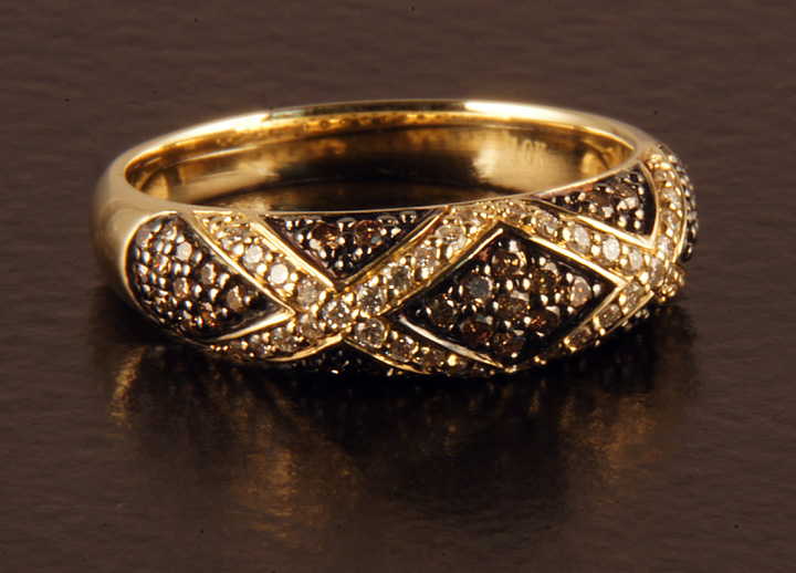 Diamond Band Chocolate and White Diamonds 10K Yellow Gold – Stock# 6949