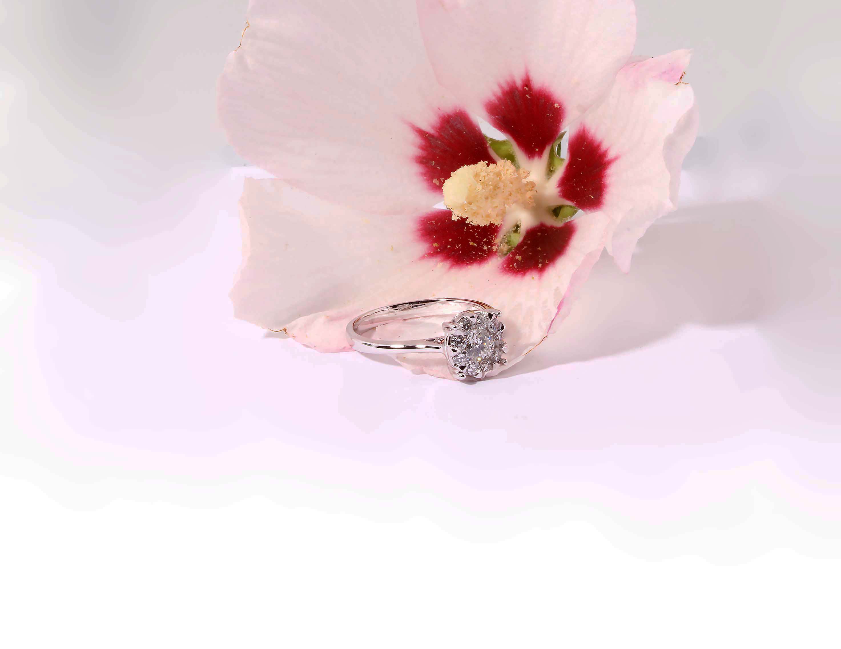 Diamond Cluster Bridal Ring in 14 White Gold with .50 Carat Total Diamond Weight with .25 Carat Center #9670