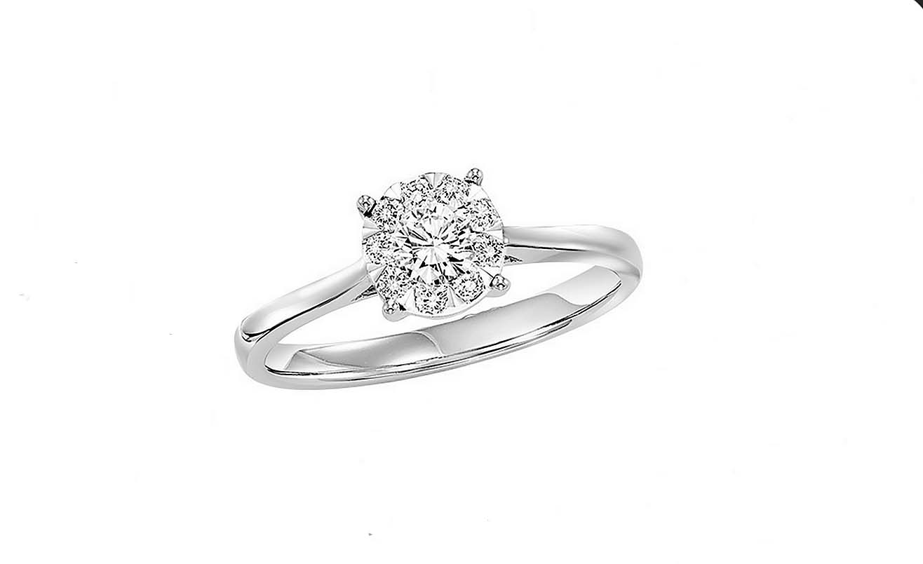 Diamond Cluster Bridal Ring in 14 White Gold with .50 Carat Total Diamond Weight with .25 Carat Center -Stock# 9670