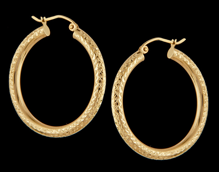 Diamond Cut Hoops in 14K Yellow Gold – Stock# 8473