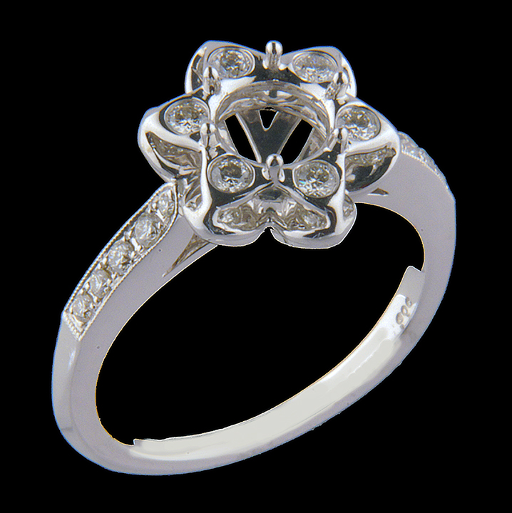 Diamond Engagement Flower Semi-Mount 0.32ct 14K White Gold – Stock# 7298