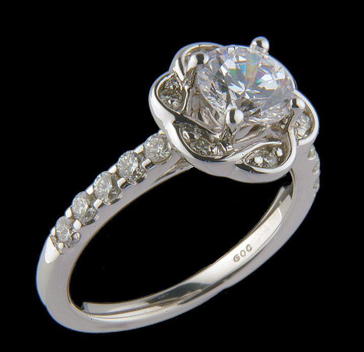 Diamond Engagement Flower Semi-Mount 0.40 ct and Center Cubic Zirconium 14K White Gold – Stock# 7296