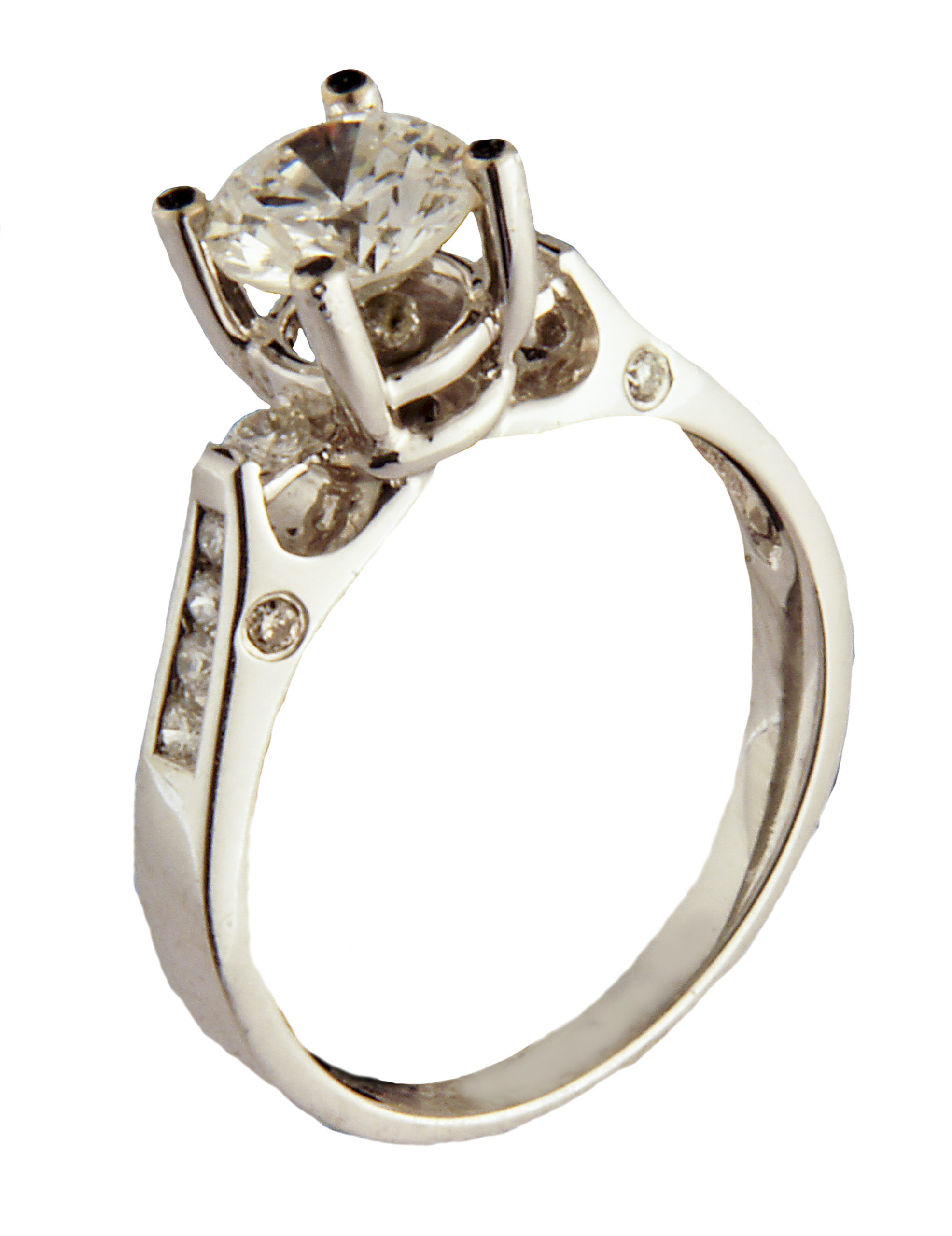 Diamond Engagement Ring 1.01ct SI3 & 0.22ctw Cathedral 14K White Gold – Stock# 7755