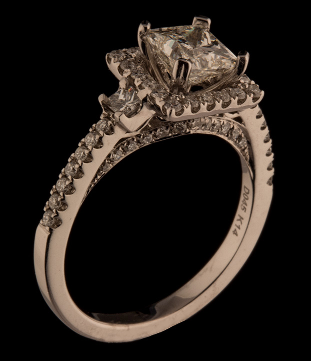 Diamond Engagement Ring 1.02ctw VS1 & 0.60ctw Princess Halo Semi-Mount 14K White Gold – Stock# 7796