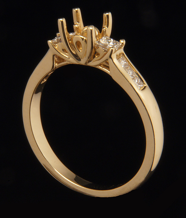 Diamond Engagement Ring Princess Semi-Mount with Side Channels 0.35 14K Yellow Gold – Stock# 6939