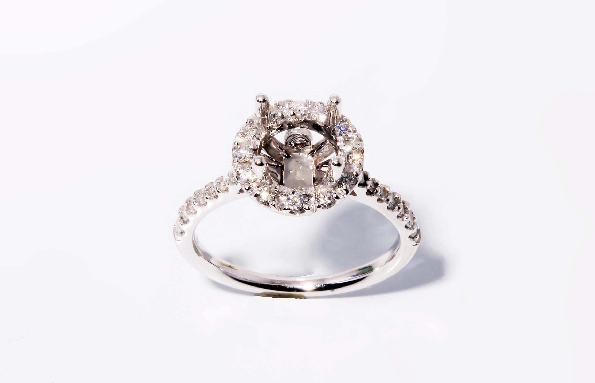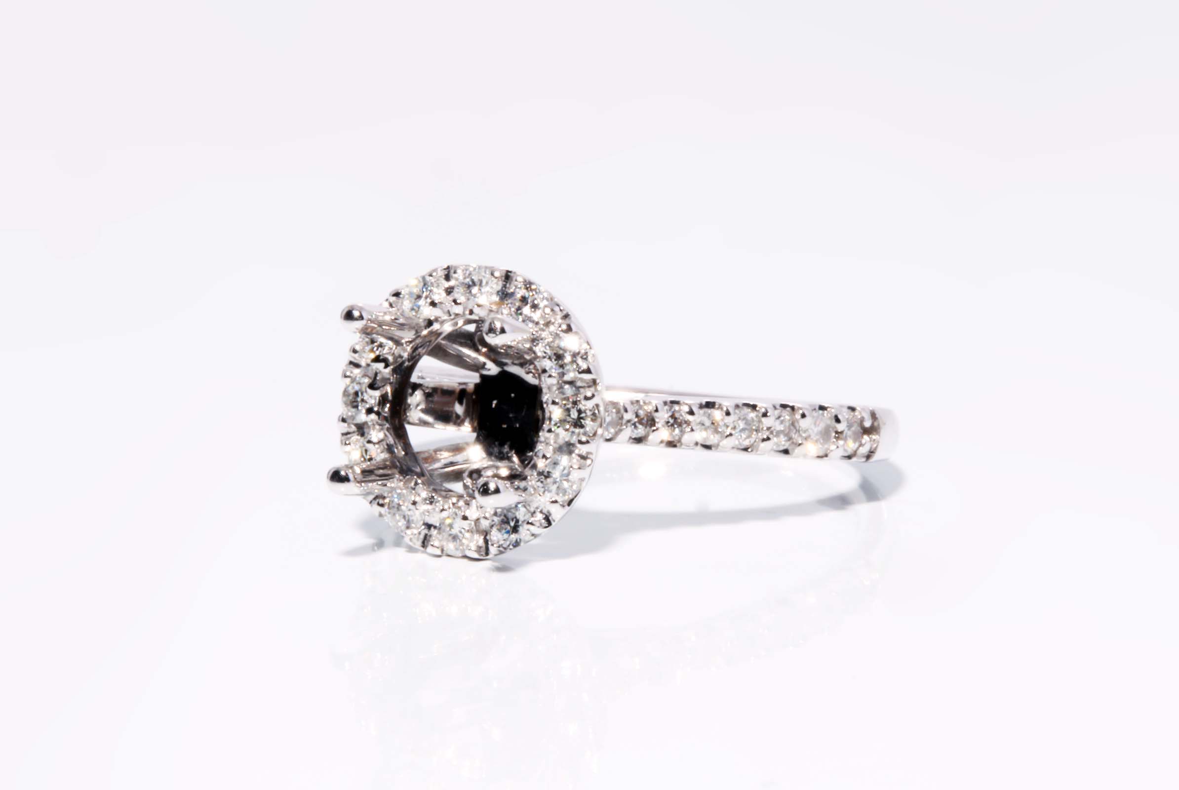 Diamond Engagement Ring Semi-Mount – Stock# 140-00025 Round Halo (0.54ctw) with Single Row of Diamonds in 14K White Gold