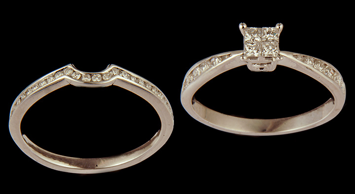 Diamond Engagement Ring Set. Invisible Princess Cut.