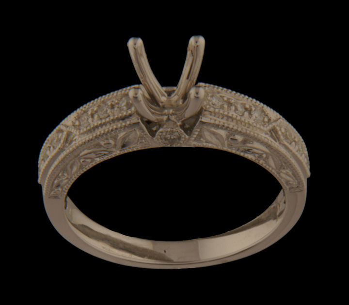 Diamond Engagement Semi-Mount Antique Engraving 14K White Gold – Stock# 6447
