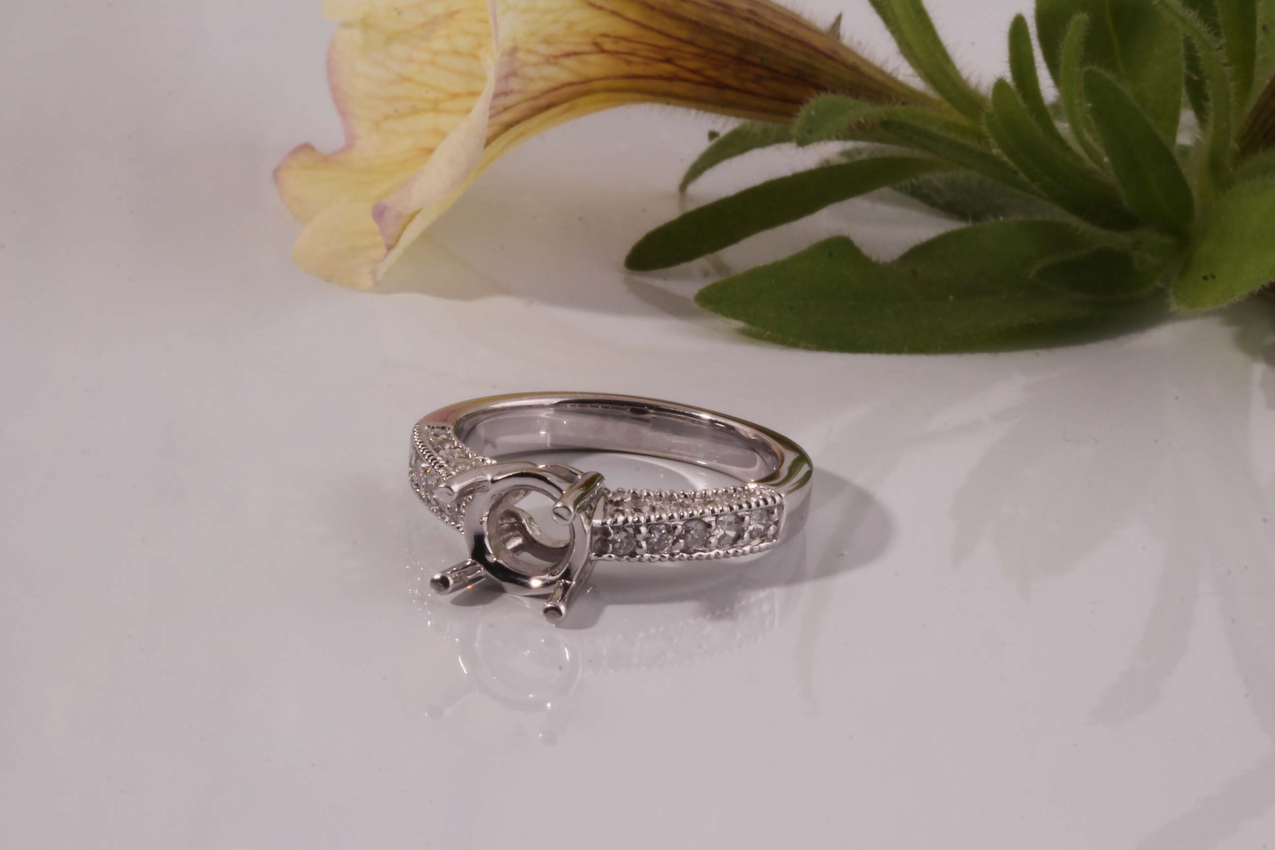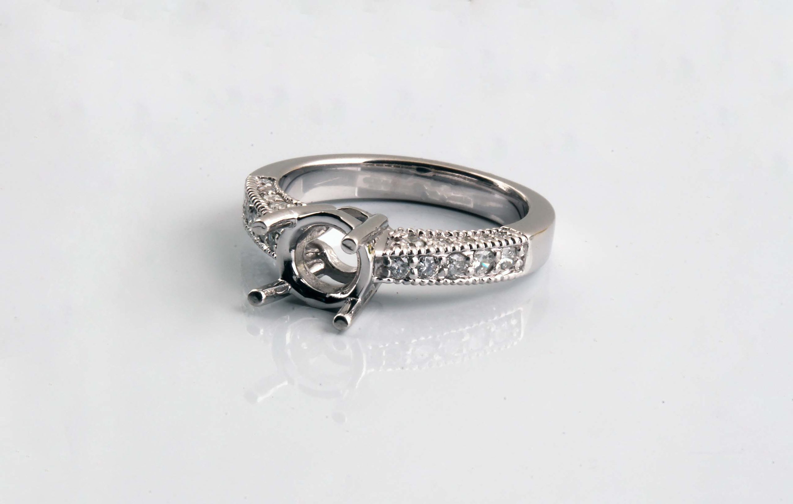 Diamond Engagement Semi-Mount Milgrain 0.52 TDW in 14K White Gold – Stock# 5108