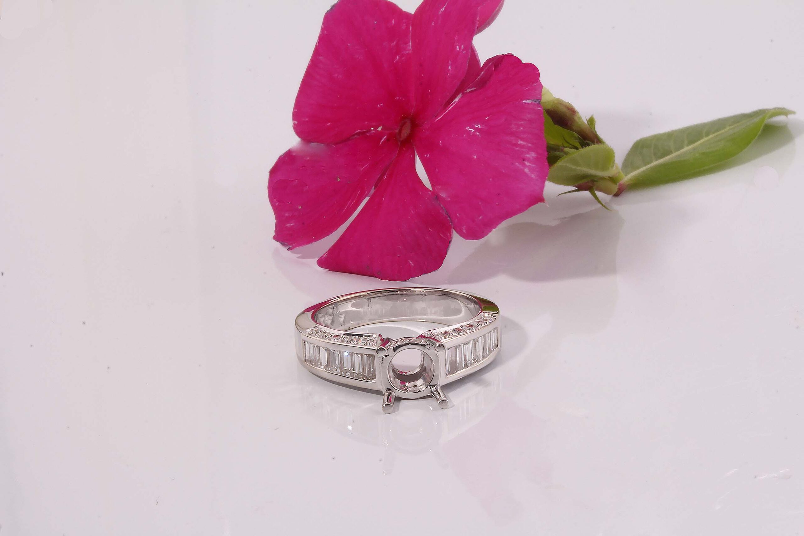 Diamond Engagement Semi-Mount Ring 0.53 Baguettes (0.53ctw) & Micro Pave (0.31ctw) Rounds 14K White Gold – Stock# 4506