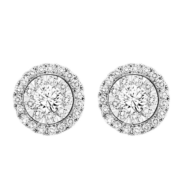 Diamond Halo Cluster Earrings – 0.50ctw in 14K White Gold #150-00004