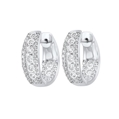 Diamond Inside Outside Oval Hoops 14KWG #11858 Easy Leaver Safety Closure 1.00 TDW