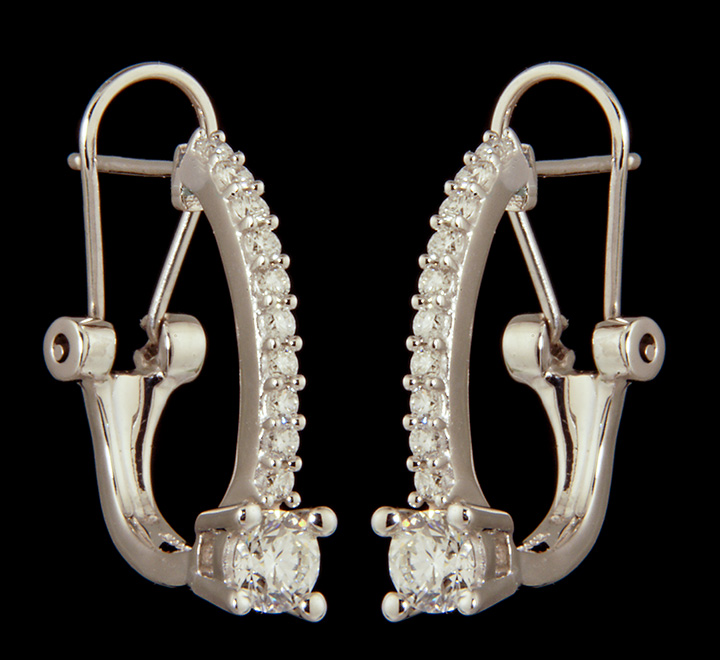 Diamond Omega Back Hoop Earrings – 1.0 ctw in 14K White Gold – Stock# 8541