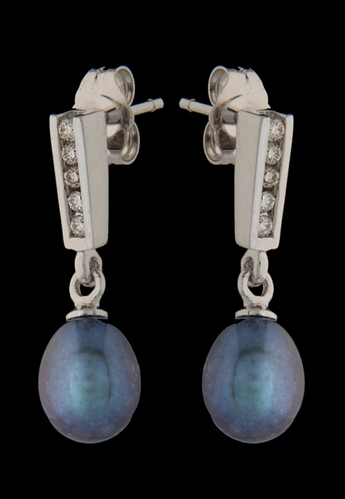 Dyed Black Pearl (7mm) Earrings with 0.13 ctw Diamonds Earrings in 14K White Gold – Stock# 7624