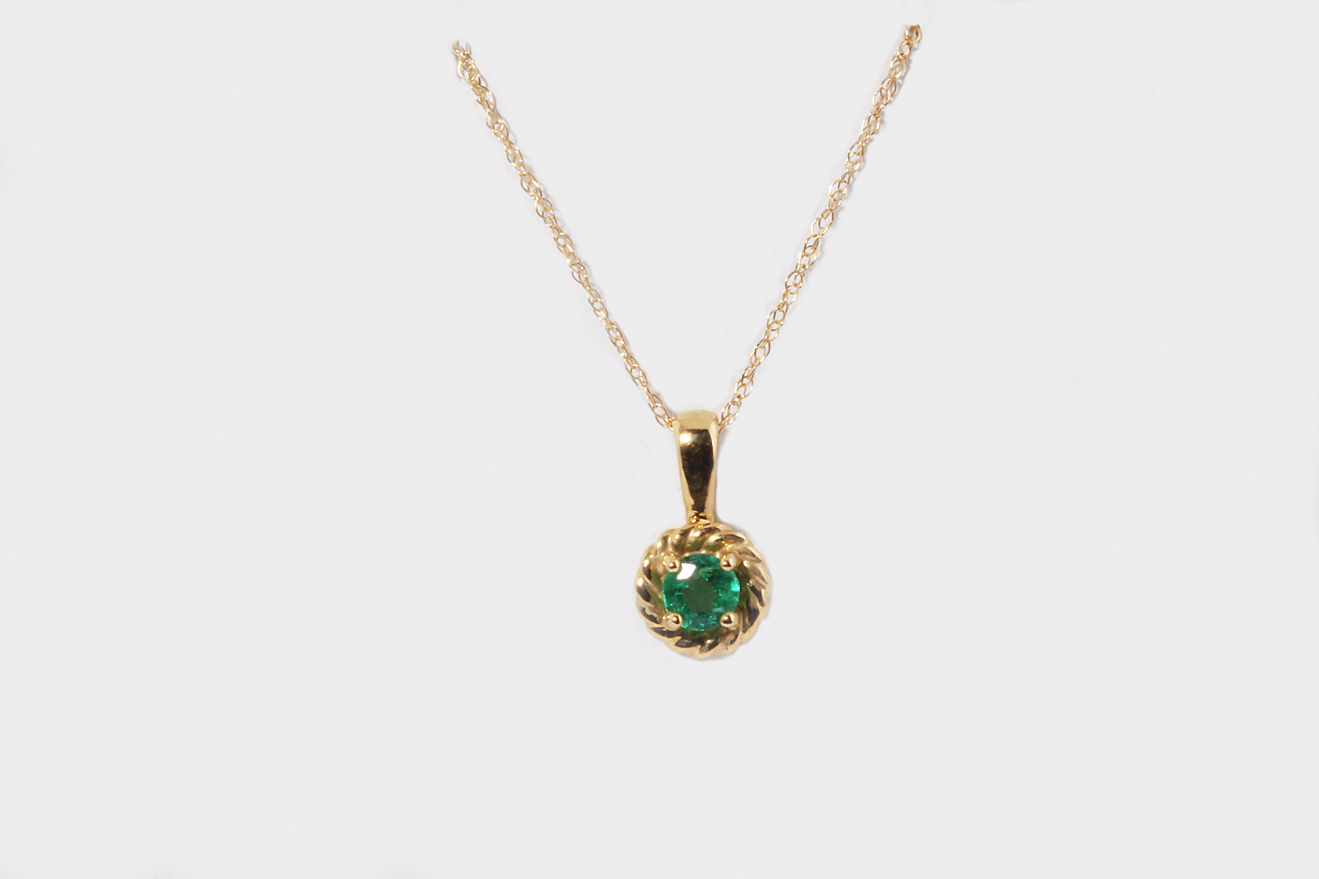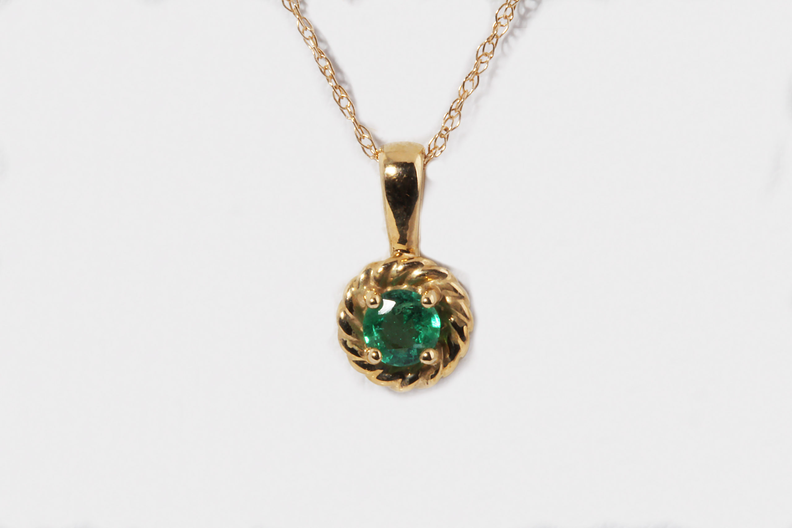 Emerald (4mm) Solitaire Pendant in 14K Yellow Gold – Stock# 230-00061
