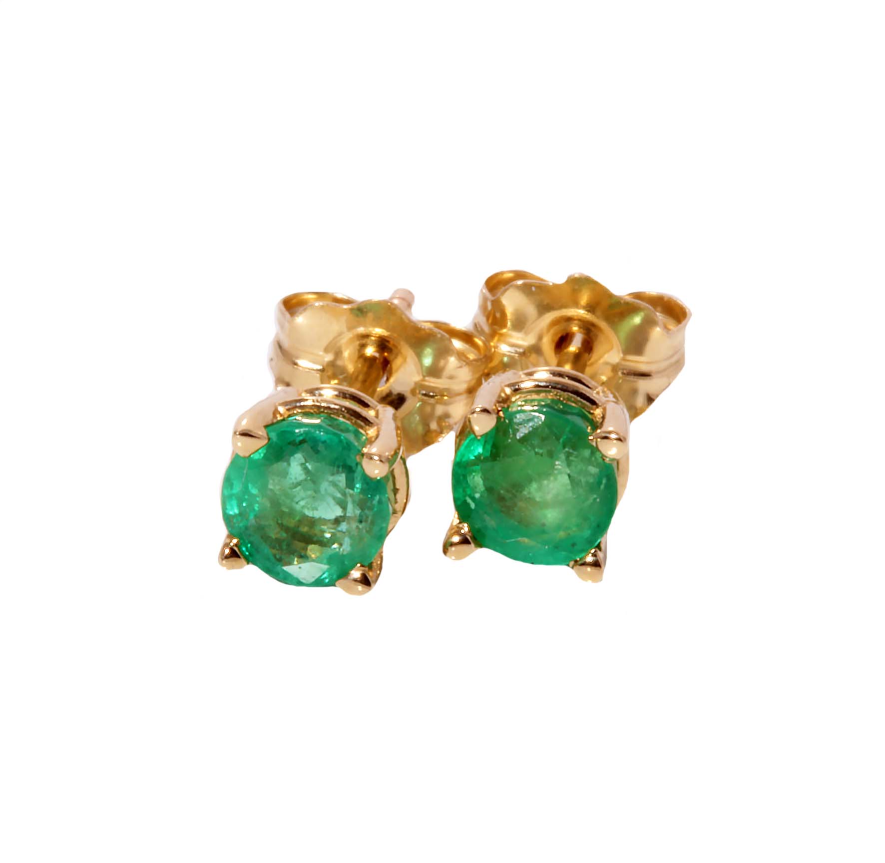 Circle Emerald .71 TGW Stud Earrings in 14K Yellow Gold – #10928