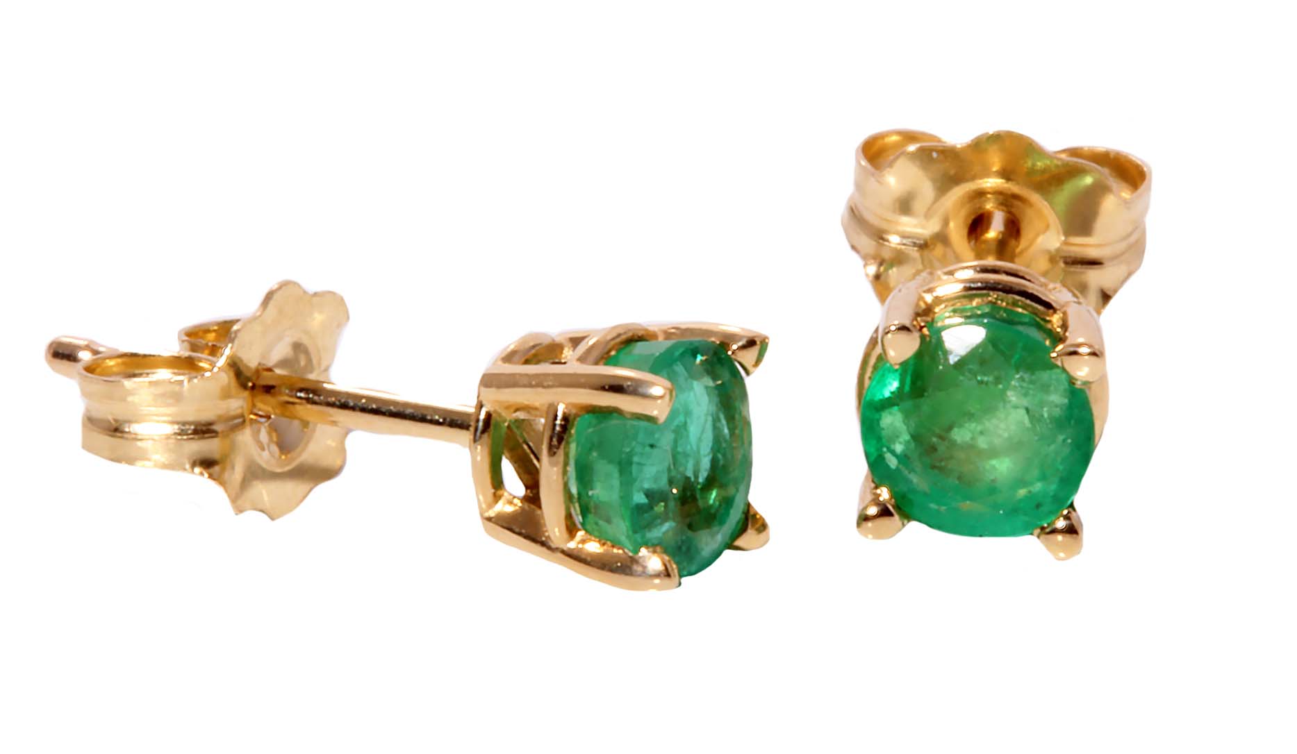 Emerald .71 TGW Stud Earrings in 14K Yellow Gold