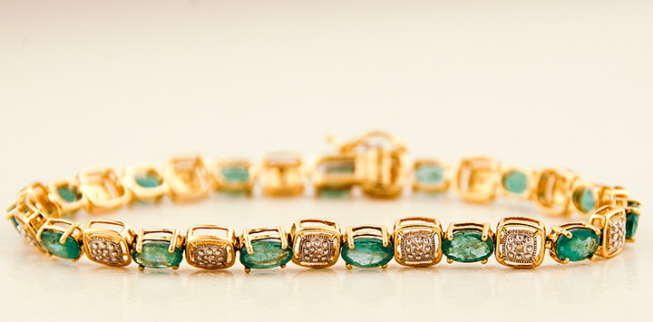Emerald and Diamond Bracelet in 14K Yellow Gold Stock# 8899