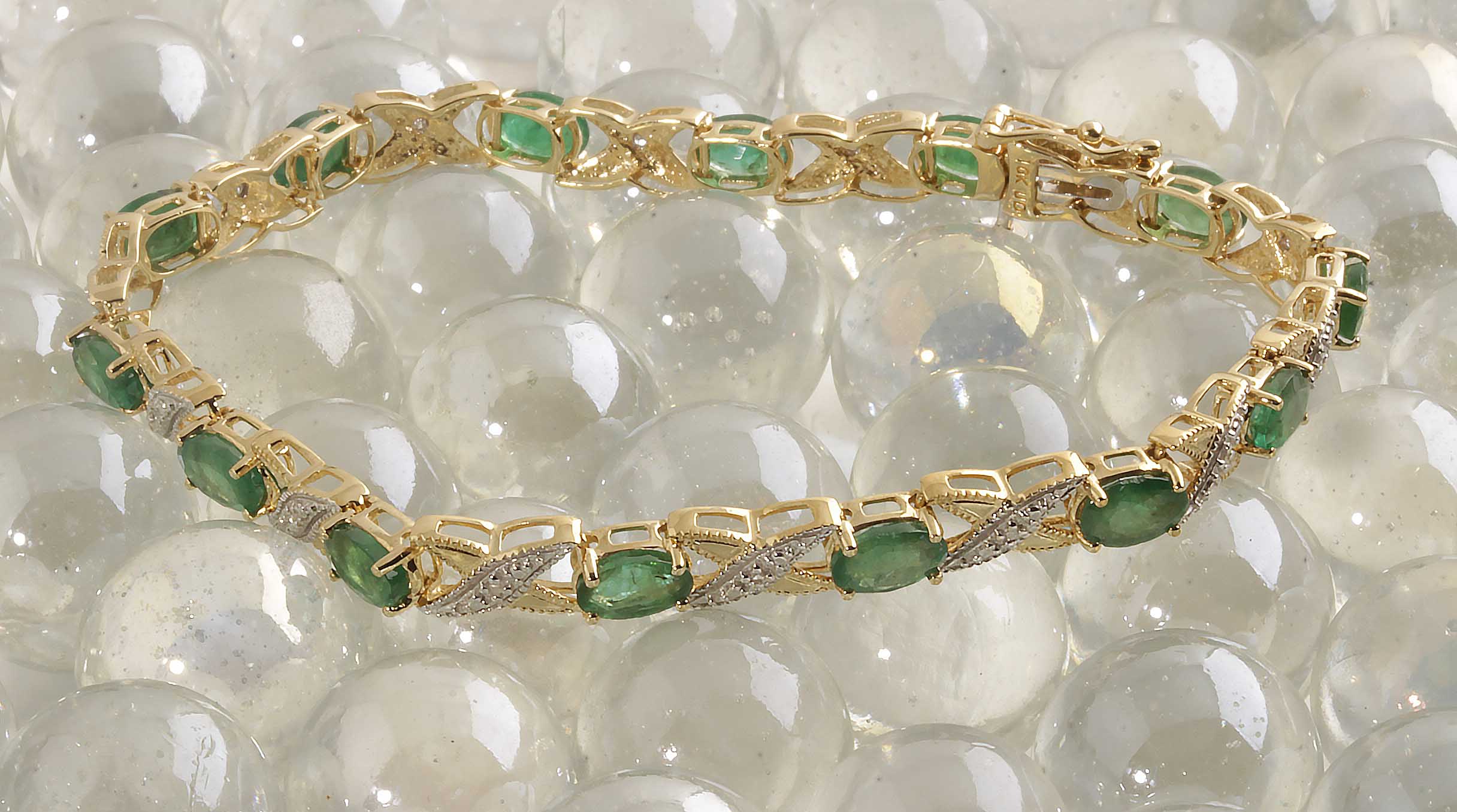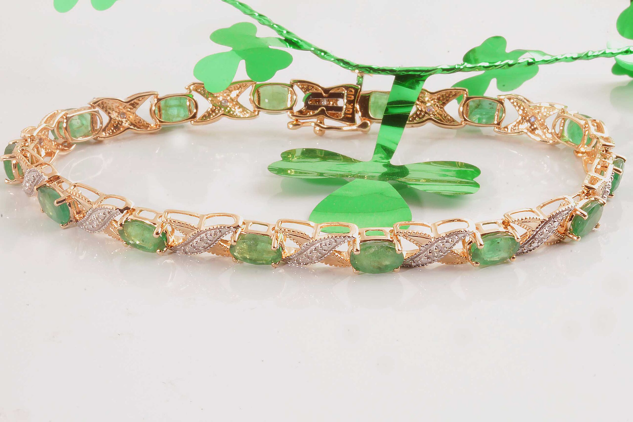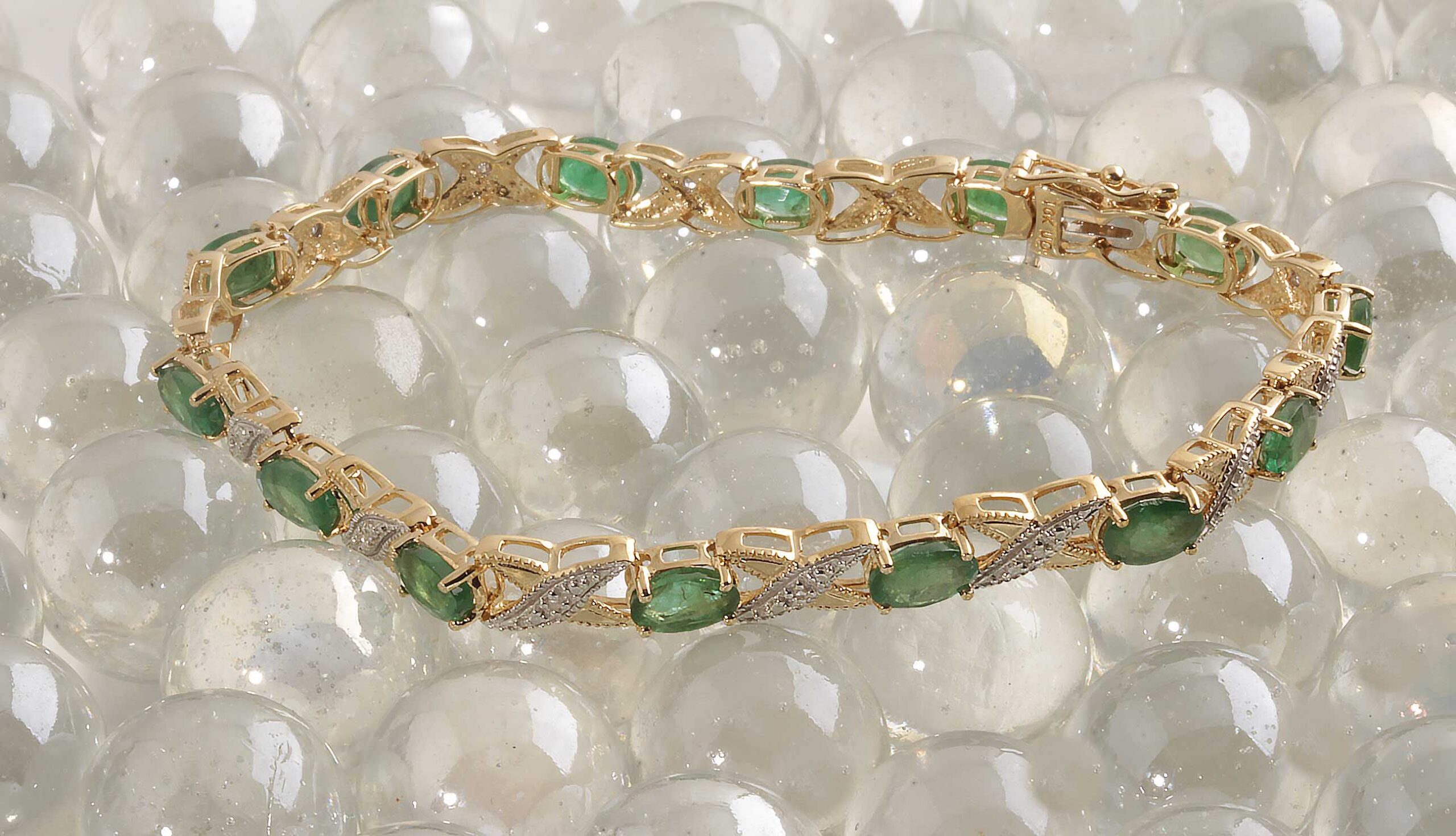 Emerald & Diamond 10K YG Tennis Bracelet X-O
