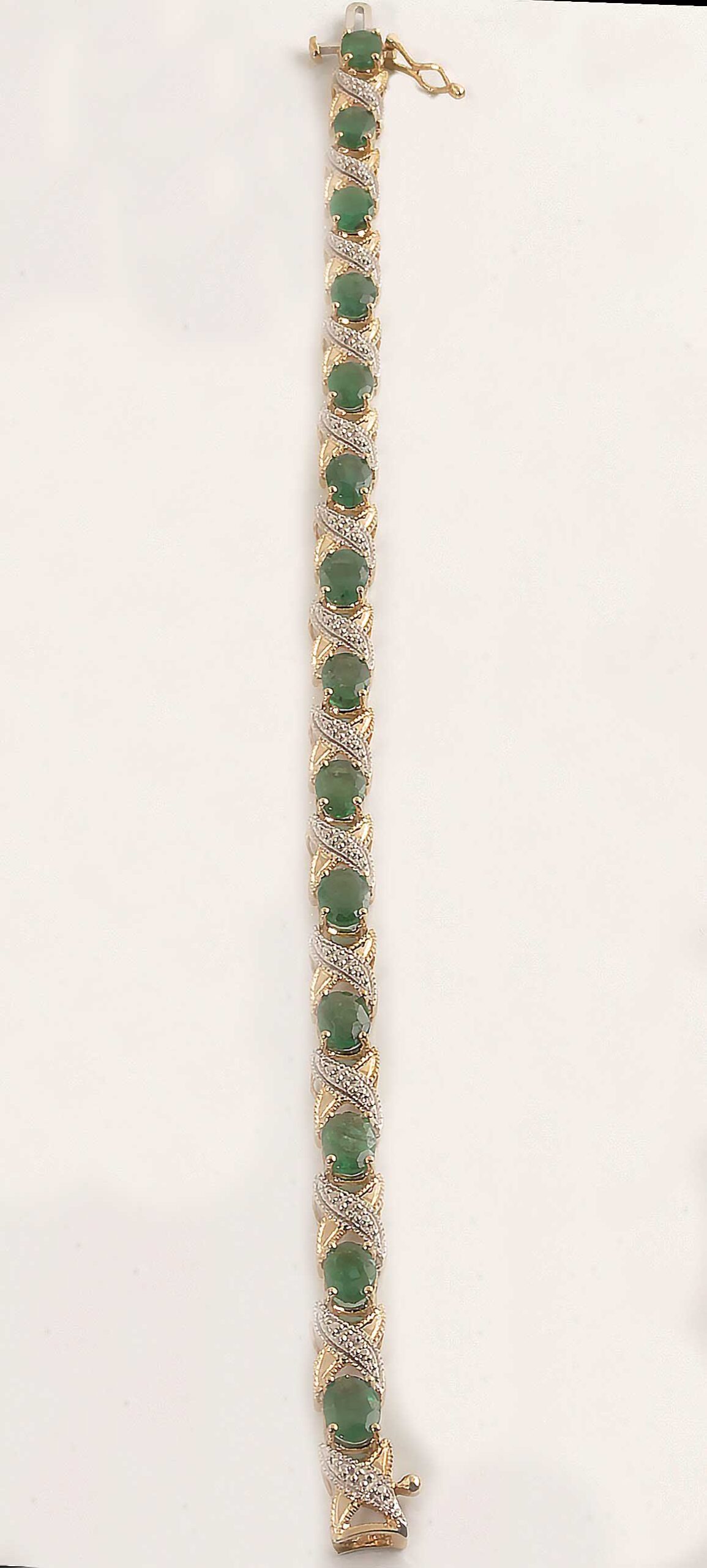 Emerald & Diamond 10K YG Tennis Bracelet X-O #11643 14-7 x 5 MM genuine Emeralds .07TDW