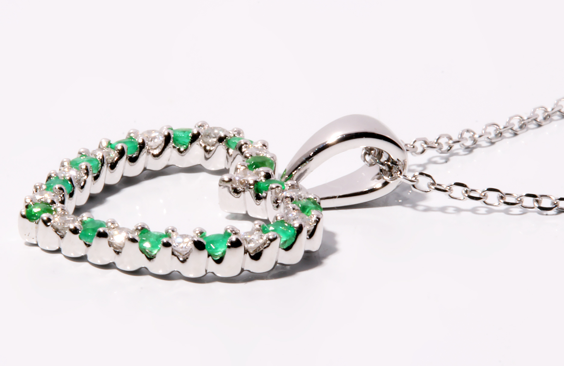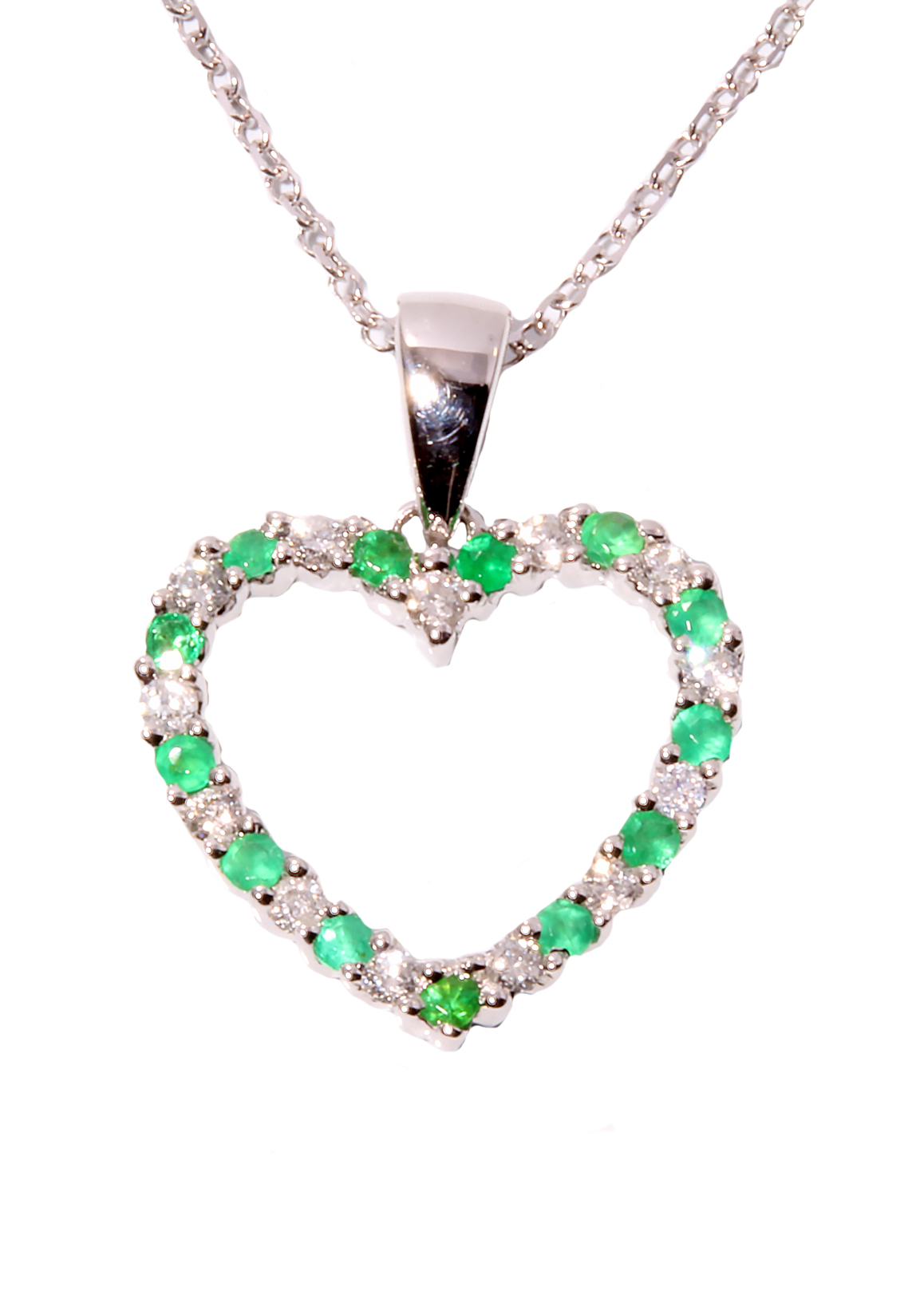 Emerald & Diamond 14KWG Heart .25 Carat TGW on 17 Inch WG Cable Link Chain