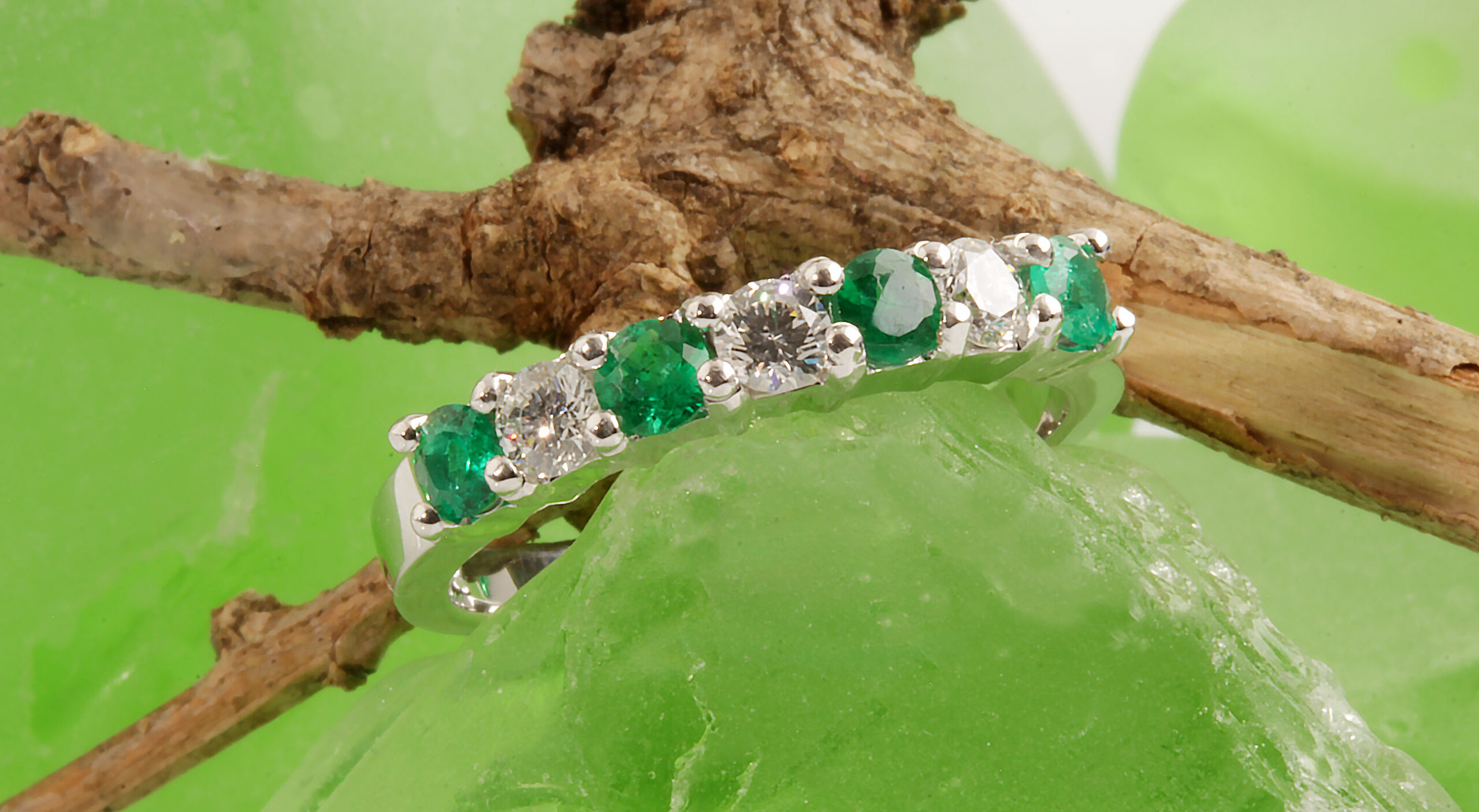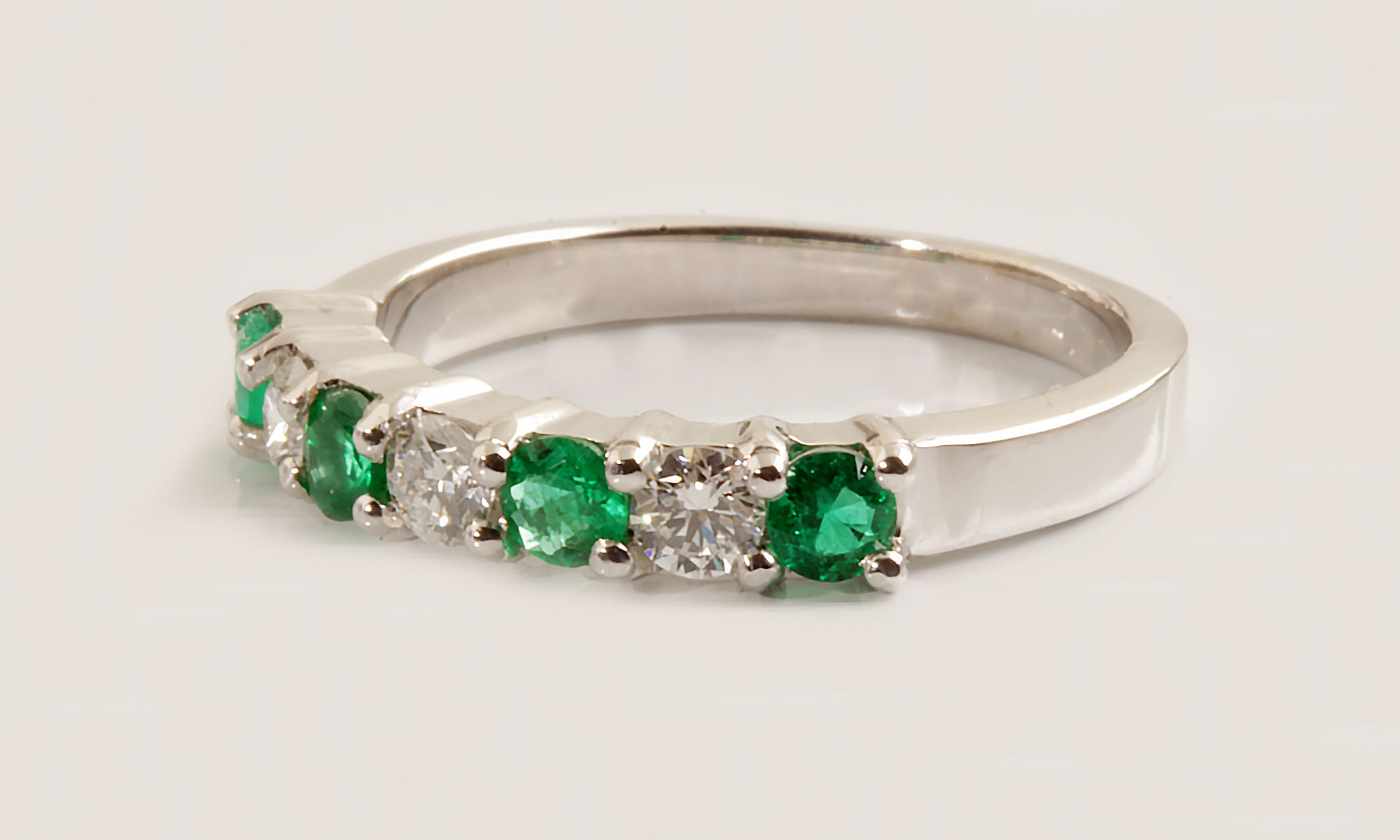 Emerald & Diamond 7 Stone Ring 14KWG #11818 Dia 0.33TDW Em 0.44CW