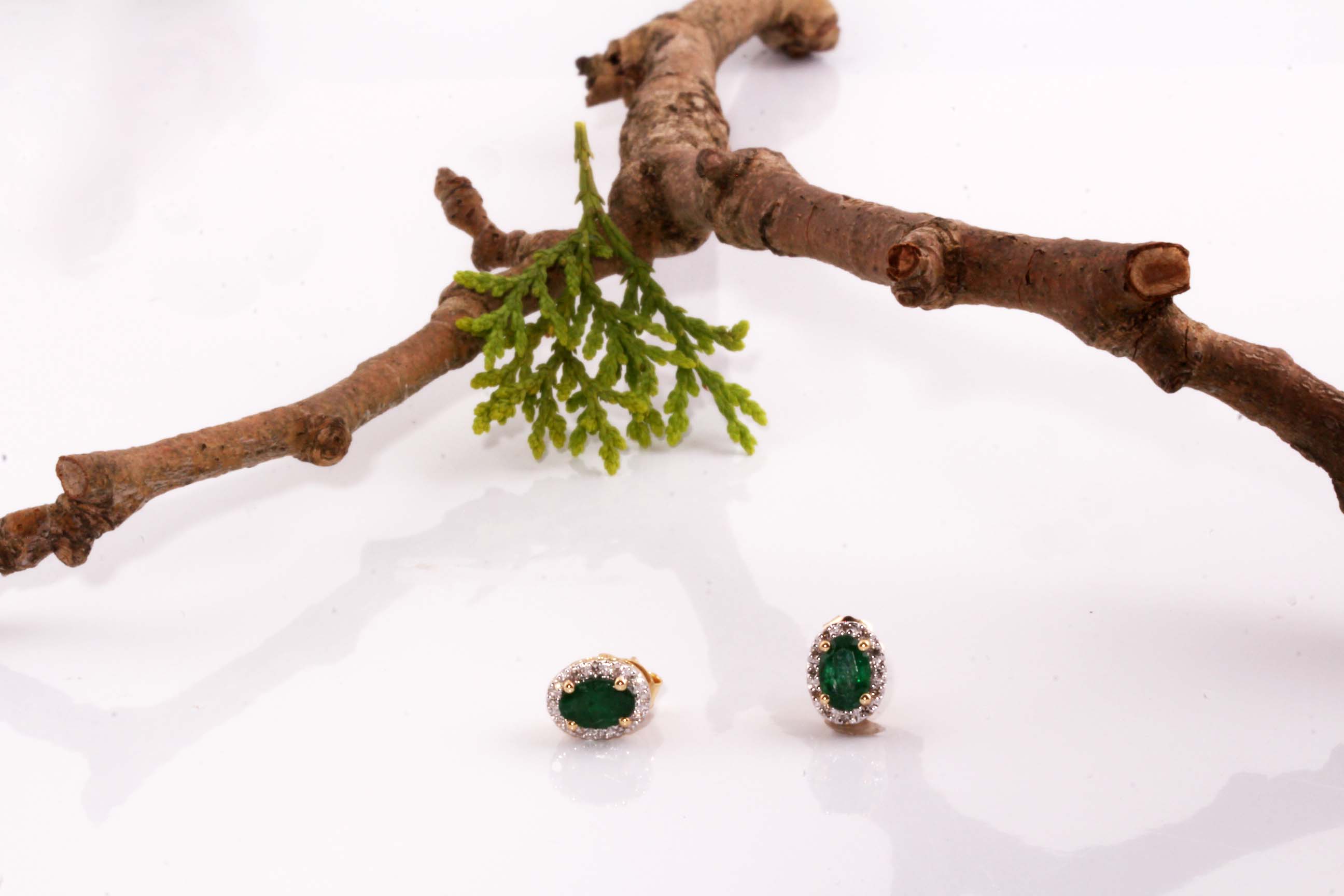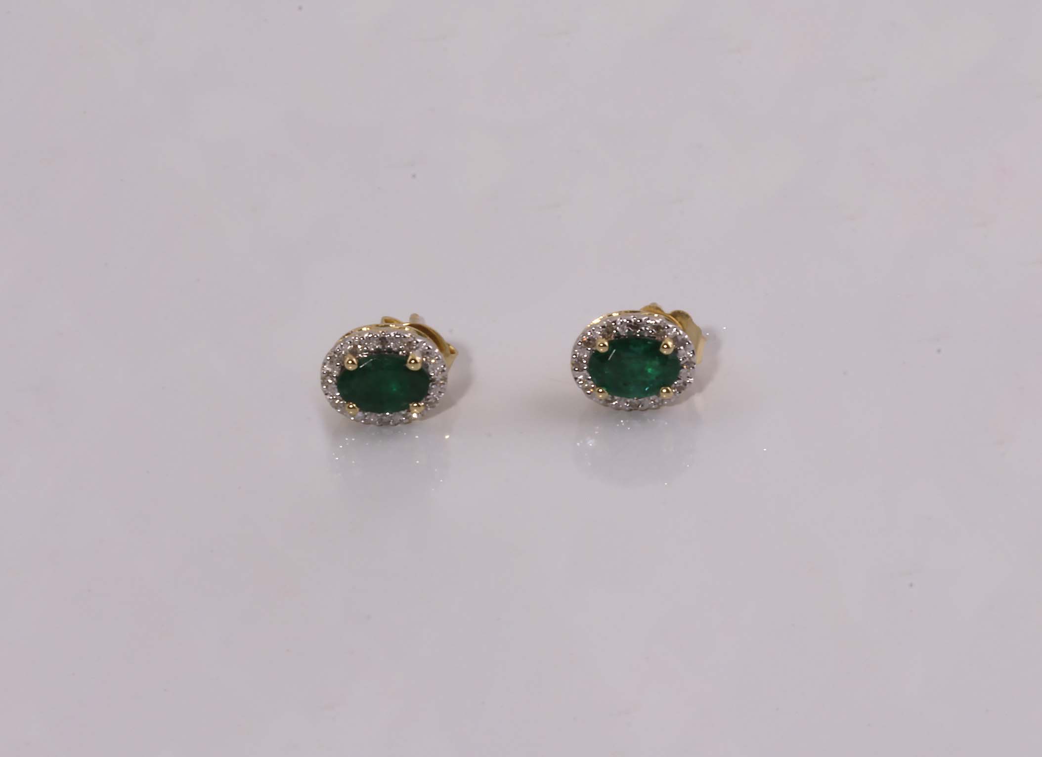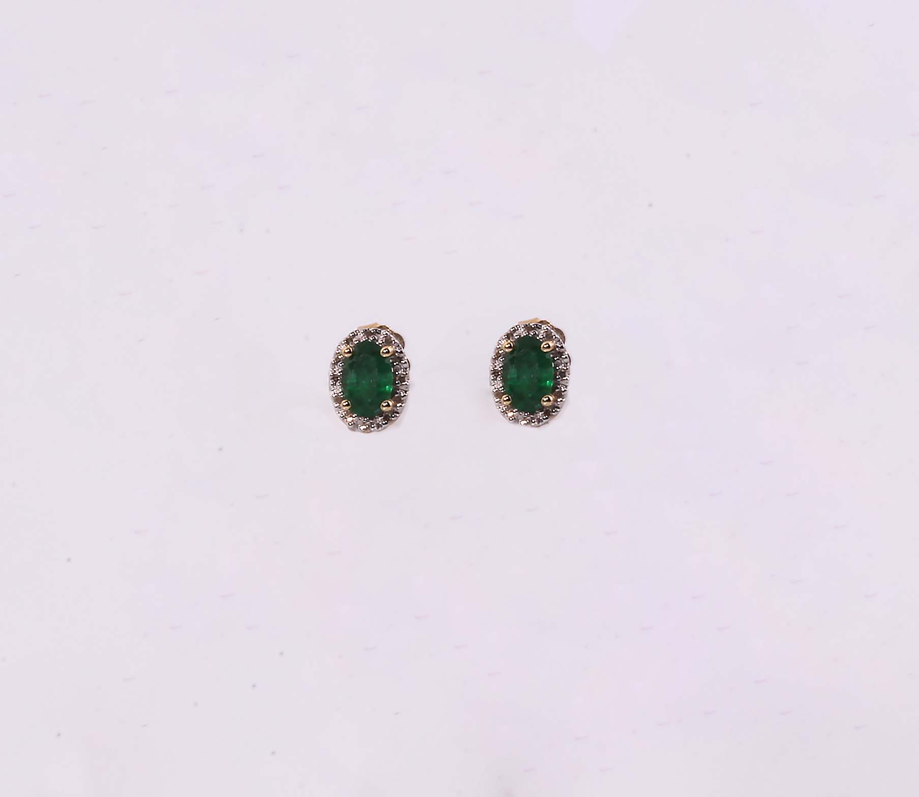Emerald & Diamond Halo Post Earrings .11TDW 6 x 4 MM Emerald 14KYG #10555