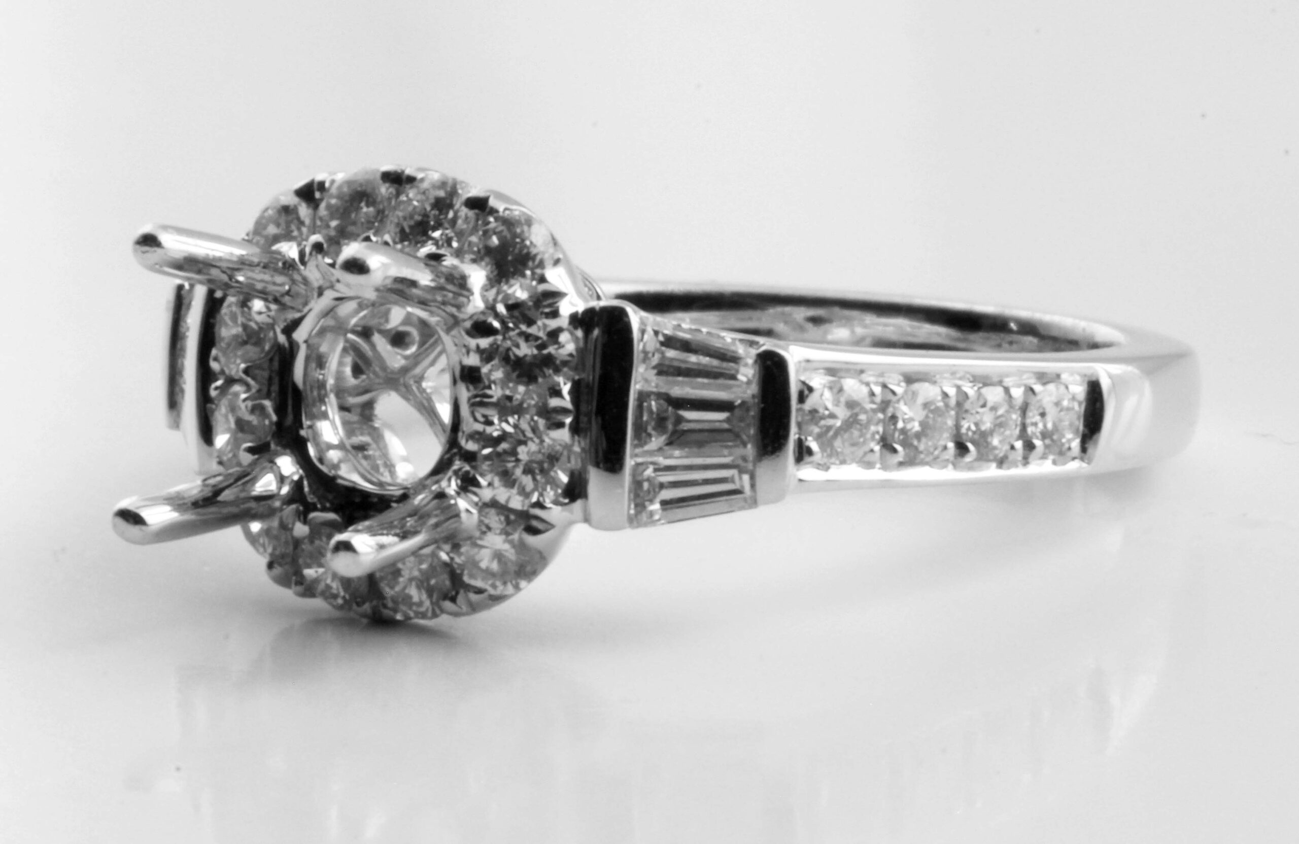 Engagement Ring Setting Halo Style With  .69 Cts TDW  Side Baguettes in 18K White Gold 140-00047