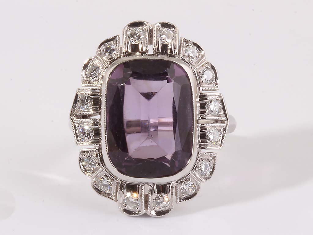Estate Amethyst and Diamond Platinum Ring w/.32 TDW