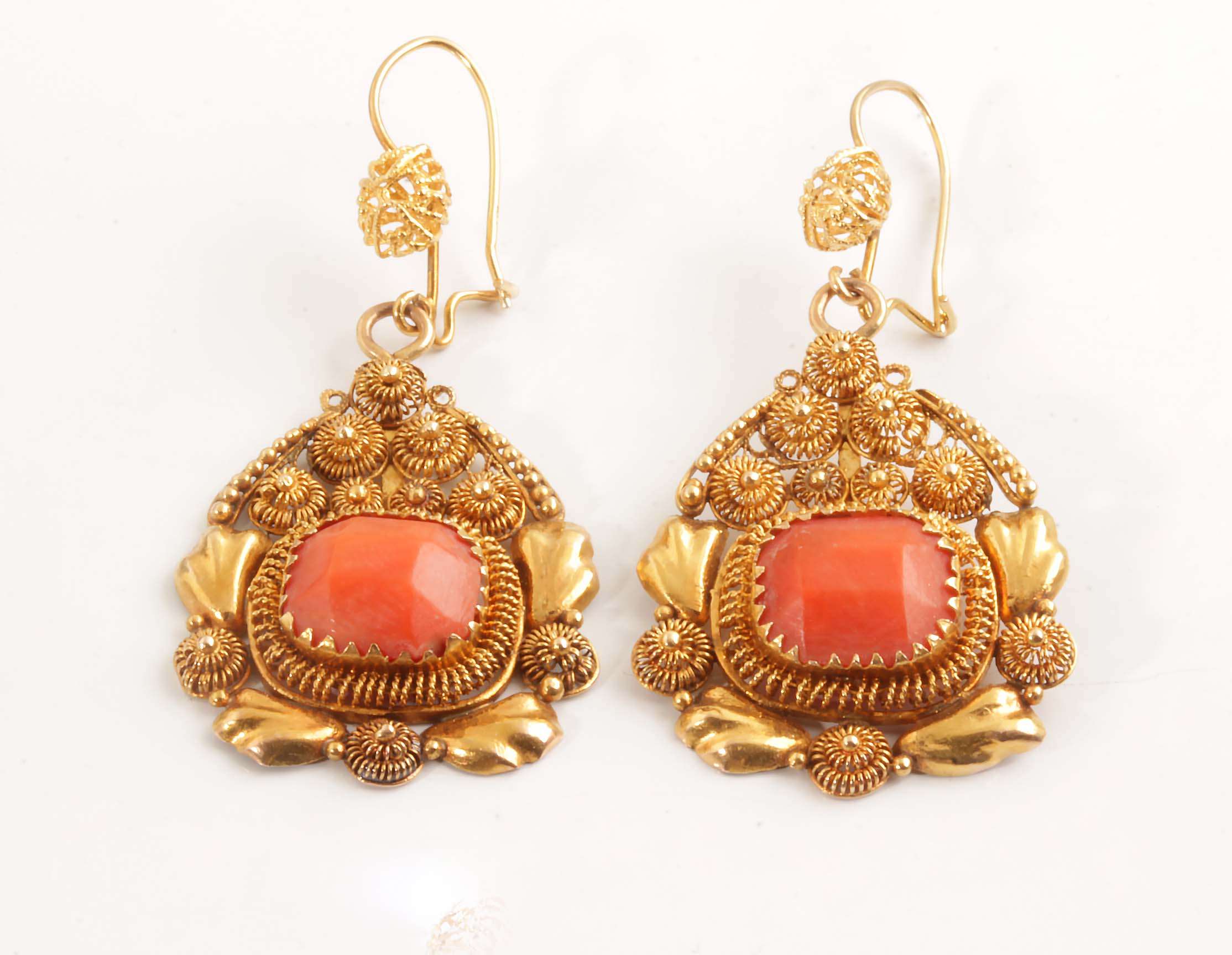 Estate Coral Dangle Earrings 14KYG