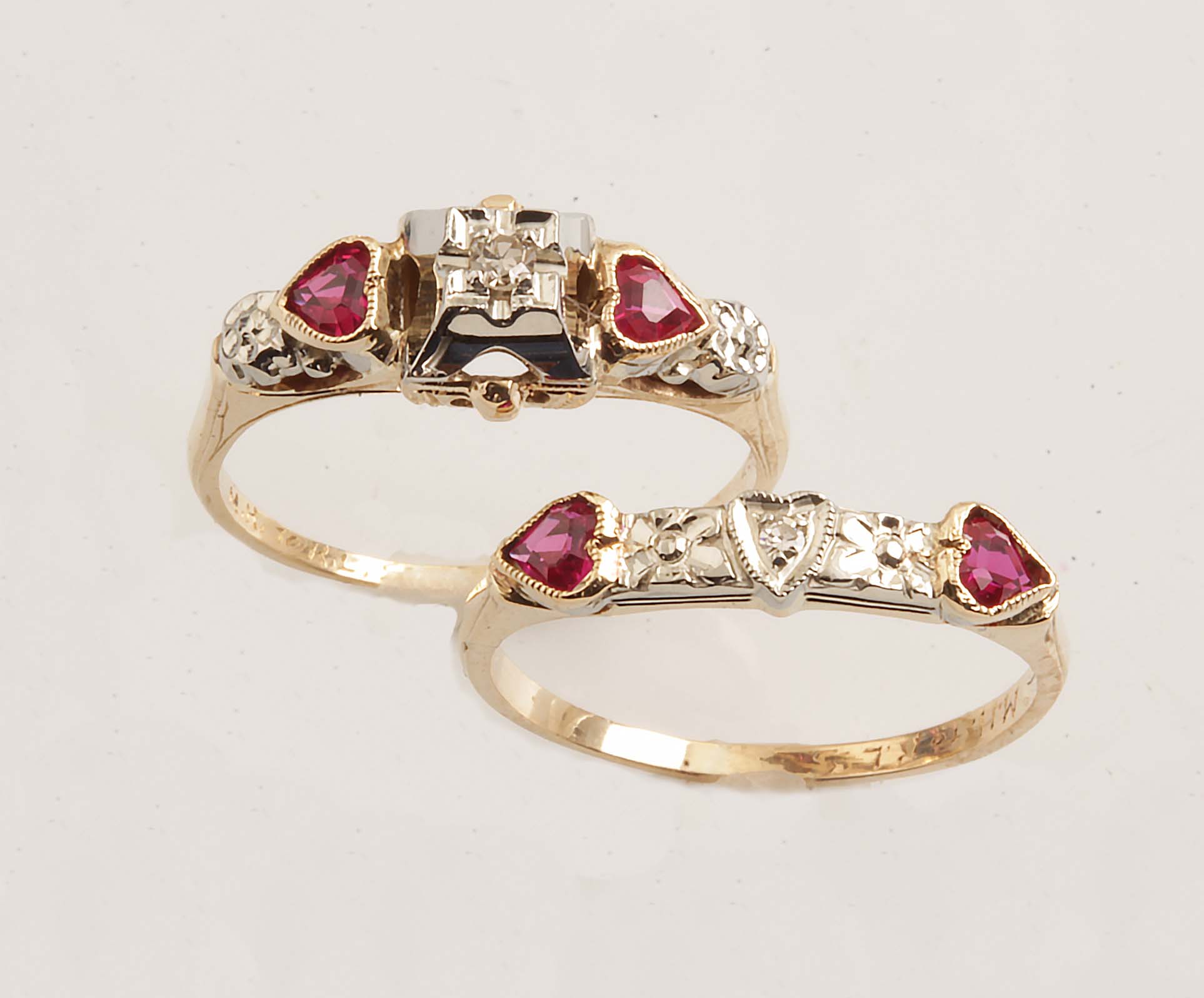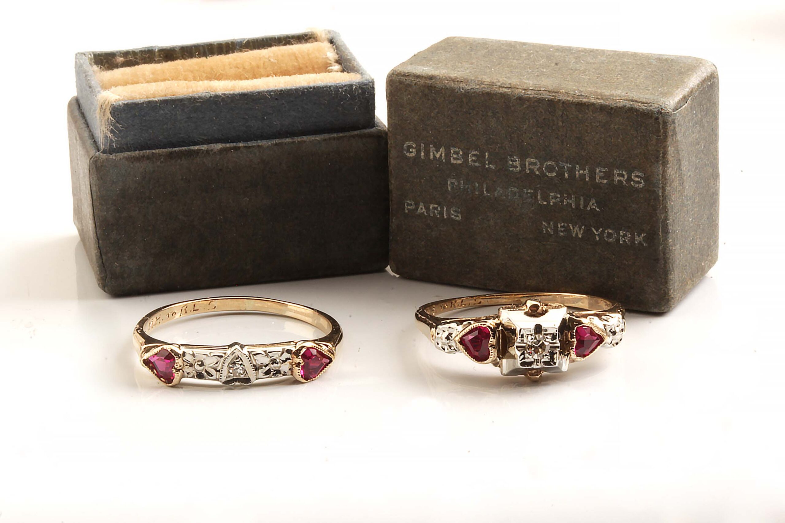 Estate Diamond and Ruby Bridal Set 14KY #098-00065