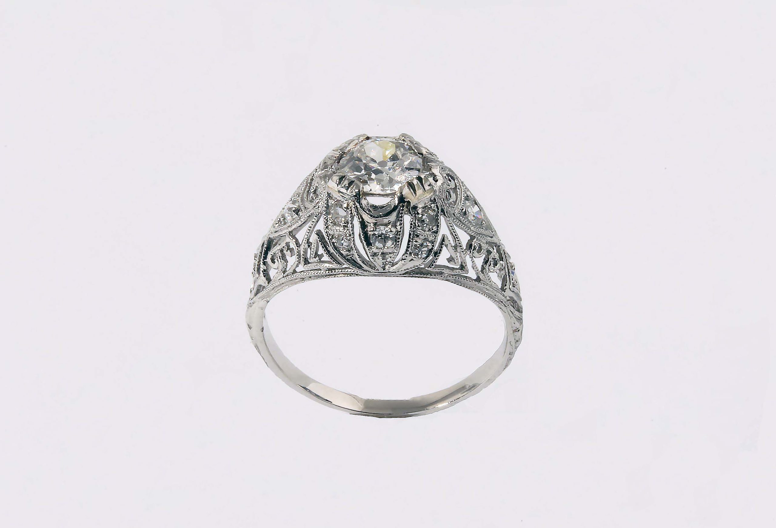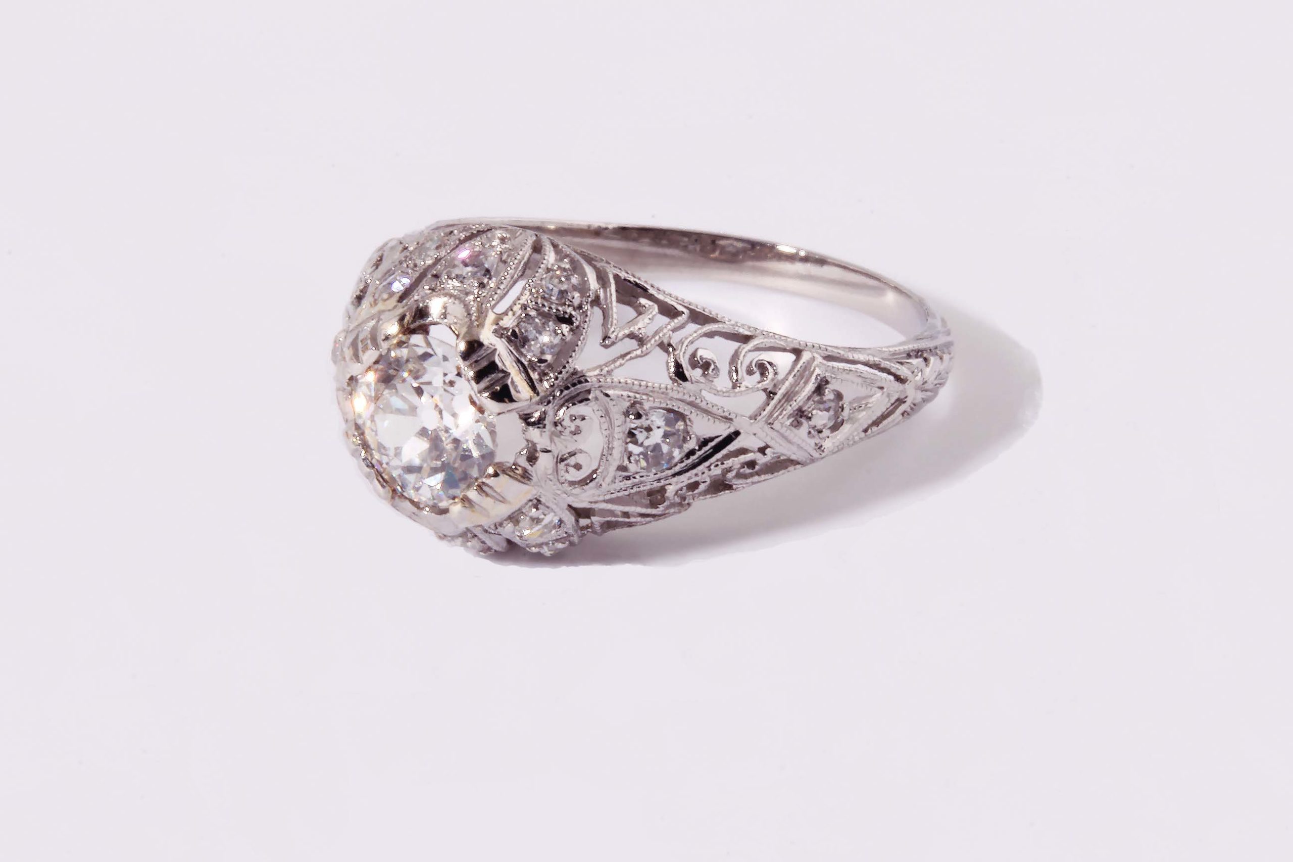 Estate Filigree Engagement ring 5/8th Carat Center .22Sides in Platinum