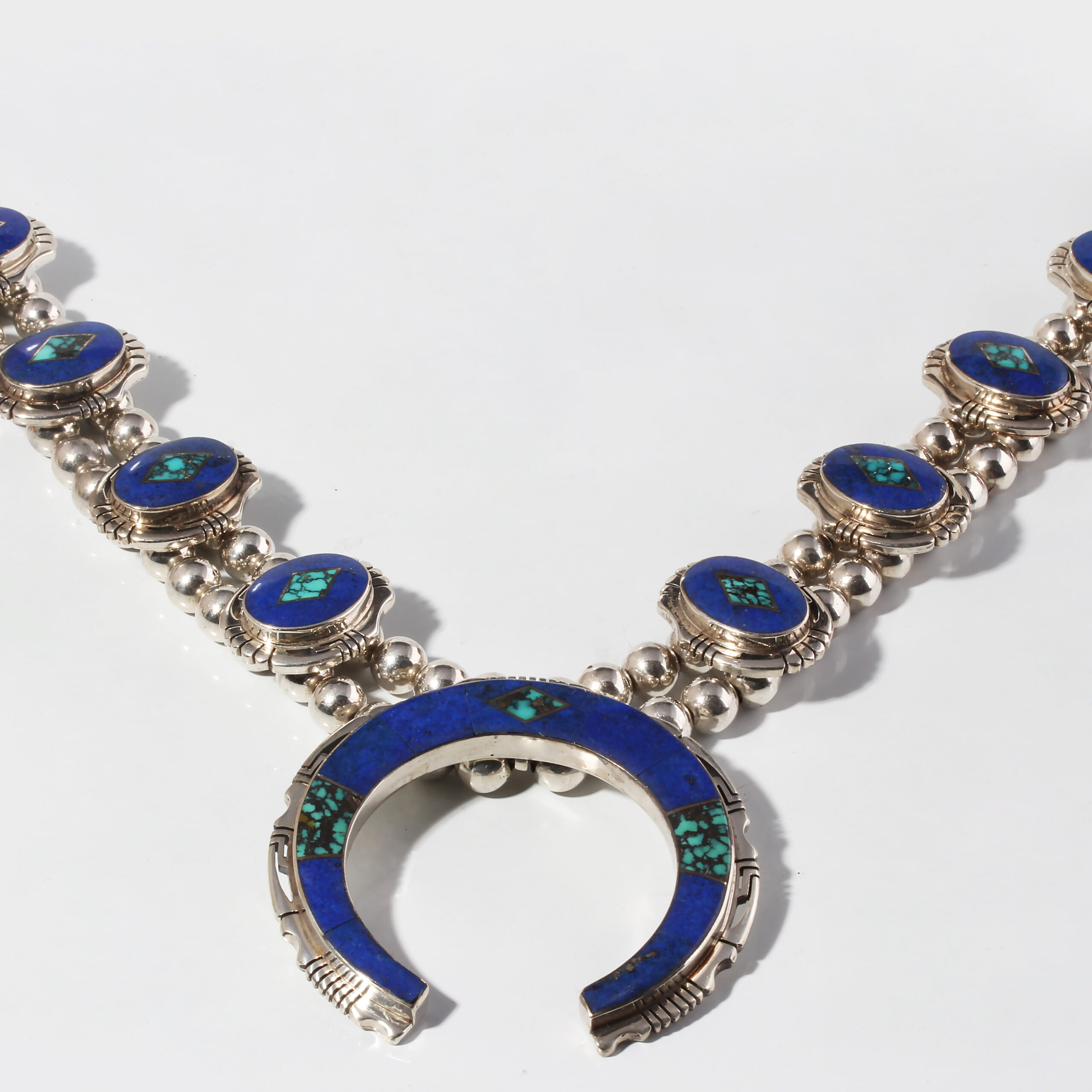 ESTATE S/S Lapis & Turquoise Moon Necklace #098-00111