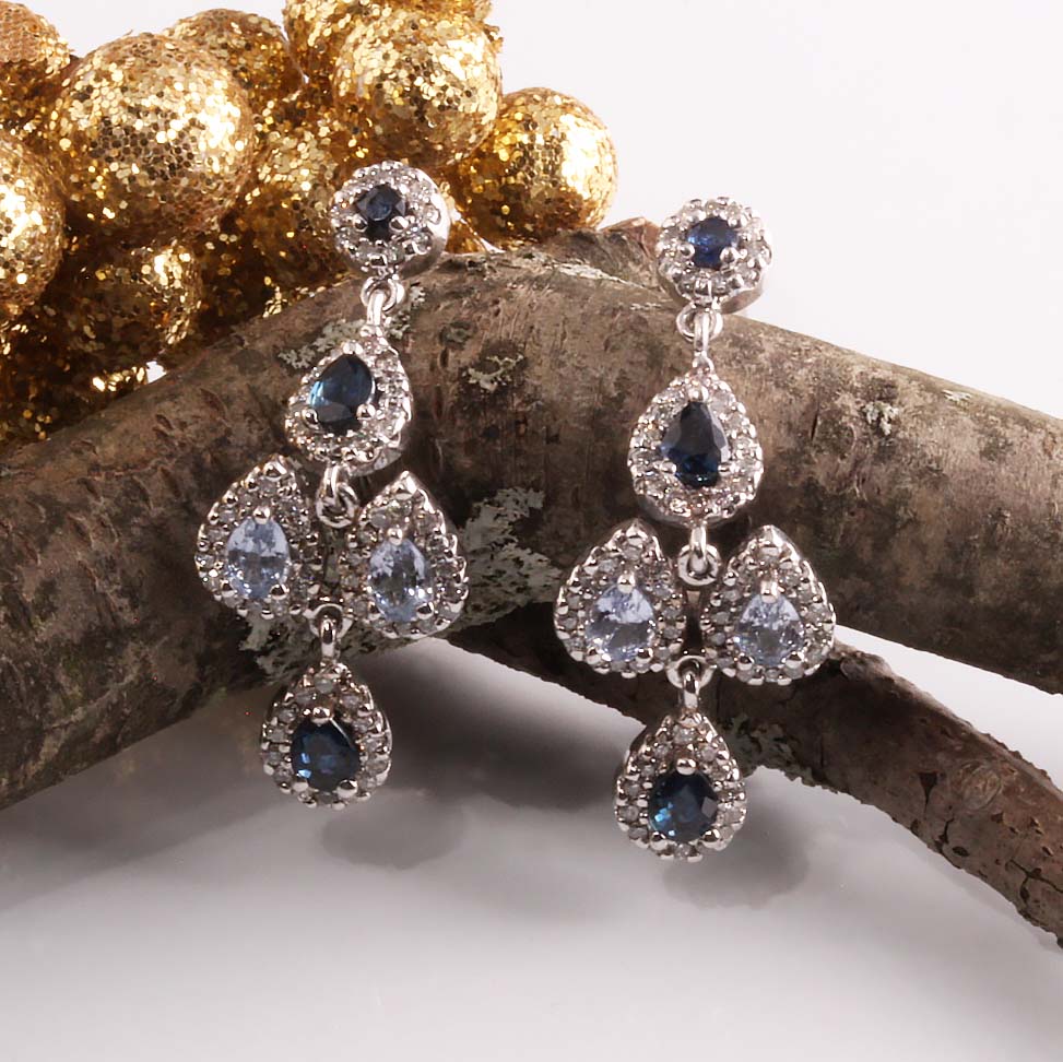 Estate 14KW Sapphire, Tanzanite & .56ct Diamond Earrings #098-00094