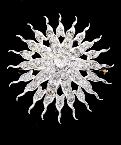 Euro-Cut Antique Diamond (1.45ctw) Sunburst in 14K Yellow Gold and Platinum – Stock# 9571