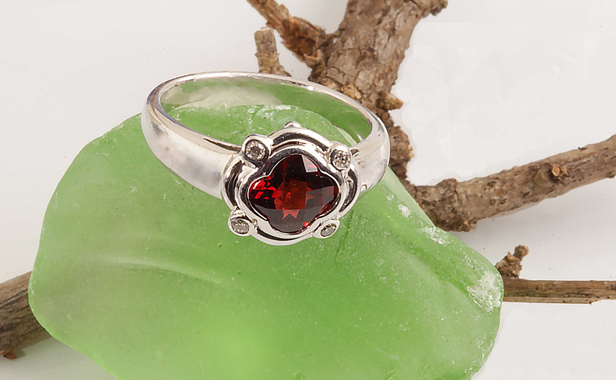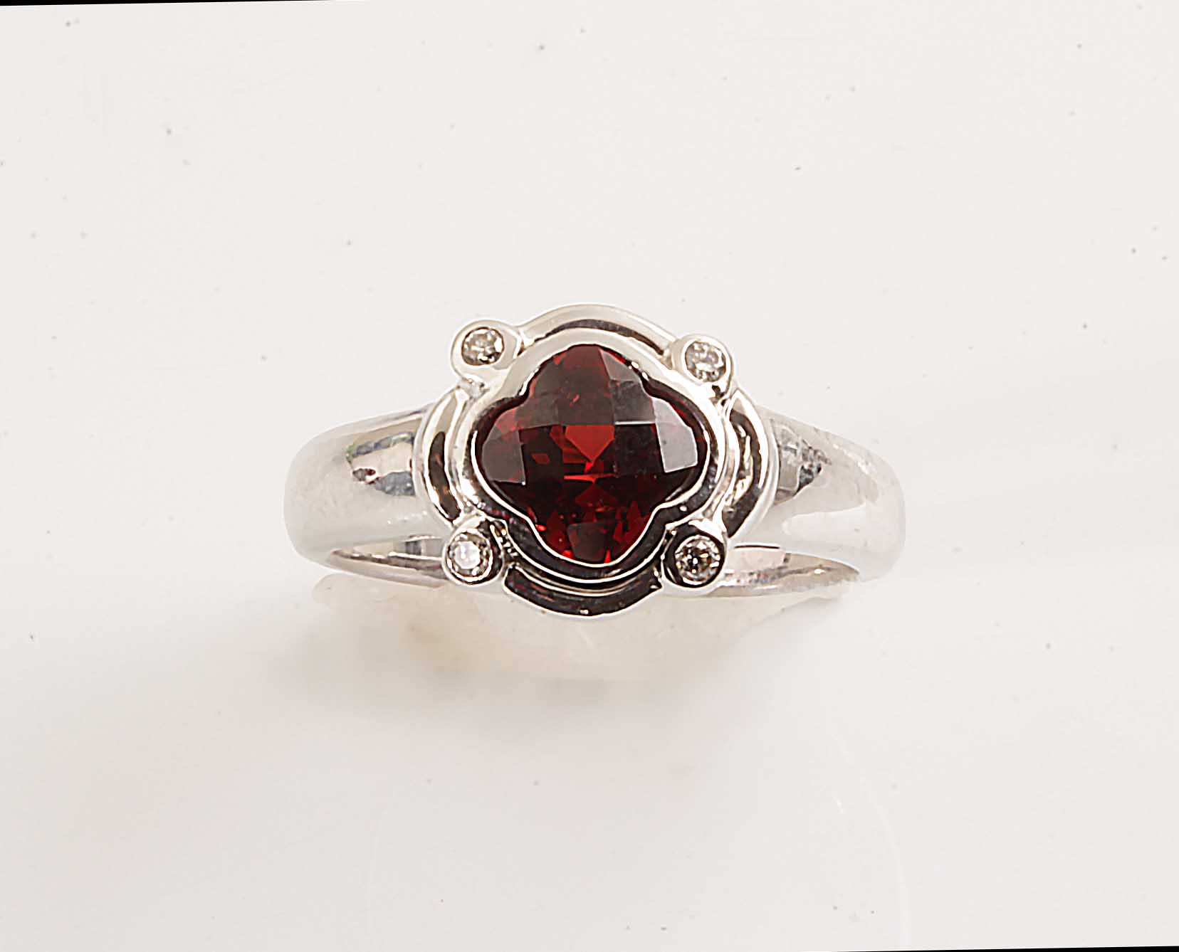 Fancy Cut 14KWG Garnet Ring w/Dia #11582 Checkerboard