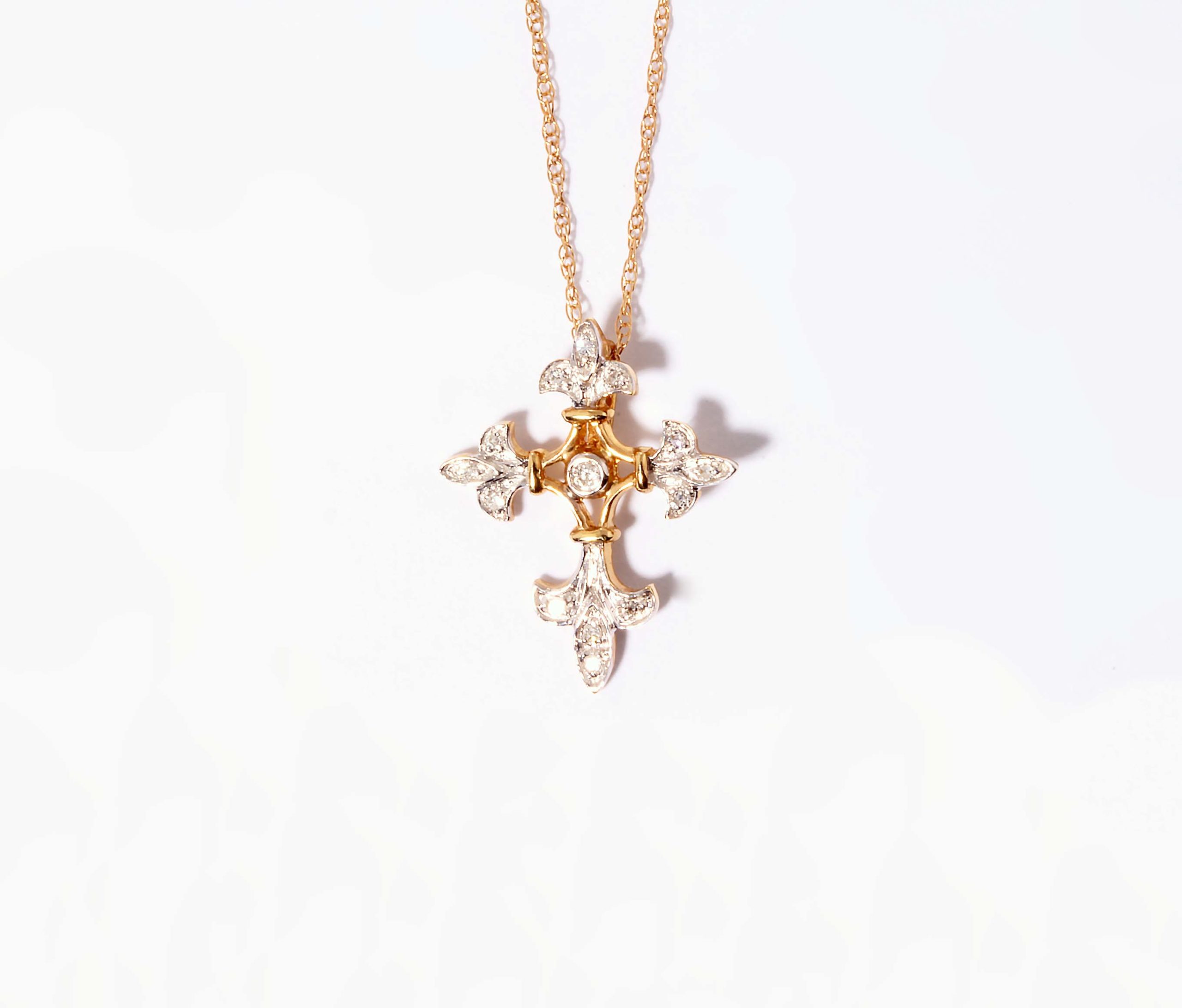 Fancy Diamond 0.05ctw Cross in 14K Yellow Gold – Stock# 8097