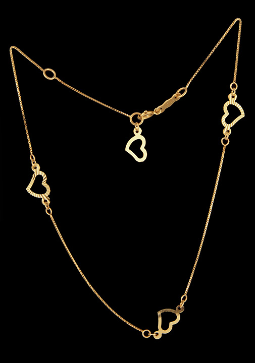 Fancy Heart Anklet 9″ in 14K Yellow Gold – Stock# 8580